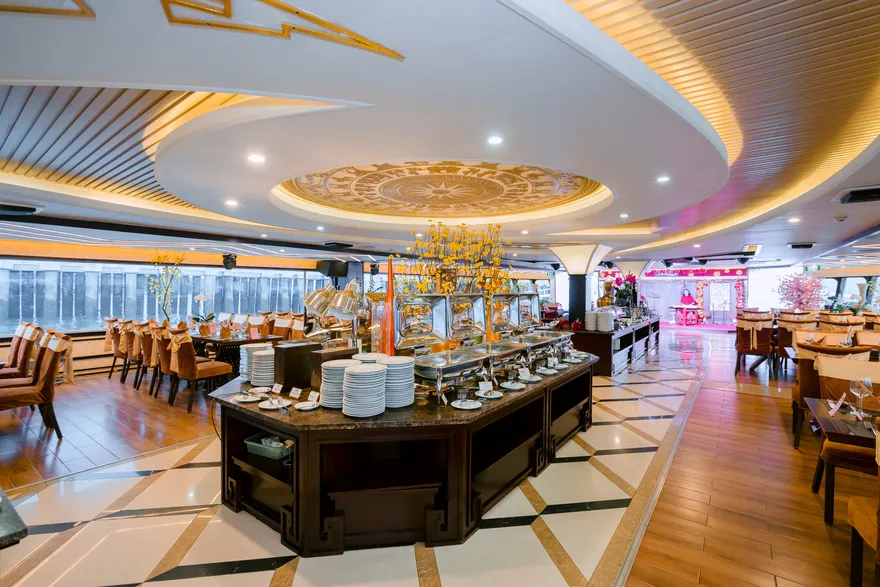 Princess Day Cruise mang đến cho du khách một trải nghiệm “Đại tiệc trên miền di sản” độc bản và duy nhất. Tại đây, khách hàng có cơ hội thưởng thức những bữa tiệc buffet hải sản và quốc tế thượng hạng với hơn 100 món ăn phong phú, nơi mỹ vị Á – Âu được hòa quyện tinh tế bởi đội ngũ đầu bếp tận tâm. Không gian ẩm thực càng trở nên thăng hoa hơn với những chương trình nghệ thuật âm nhạc sống động từ các ban nhạc quốc tế và nhạc công truyền thống. Có thể nói, một hành trình cùng Princess Day Cruise chính là mảnh ghép cuối cùng giúp chuyến khám phá Hạ Long của du khách trở nên trọn vẹn và đẳng cấp đúng nghĩa.