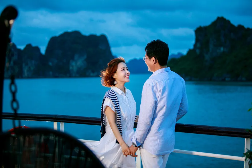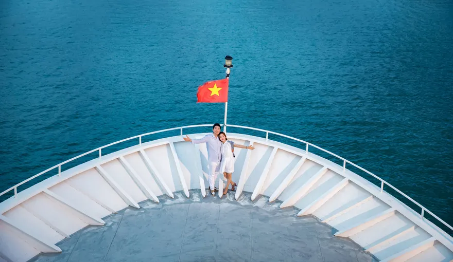 Trải nghiệm “Heritage Sunset on the Bay”: Thưởng thức tiệc trà chiều truyền thống Việt Nam và đồ ăn nhẹ trên sundeck khi hoàng hôn buông xuống.