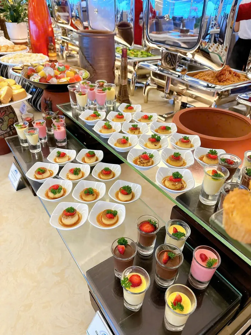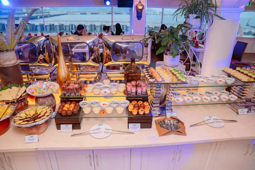 Không chỉ dừng lại ở các món mặn, thực đơn tráng miệng và đồ uống tại đây cũng được đầu tư vô cùng tinh tế để tạo nên cái kết hoàn hảo cho bữa tiệc. Du khách có thể thưởng thức những món bánh ngọt trứ danh như Opera cake, Tiramisu hay Mousse dâu tây mịn màng. Đặc biệt, sự xuất hiện của Trà sữa Matcha trân châu và Pudding Caramel mang đến nét hiện đại, trẻ trung cho thực đơn tráng miệng. Ngoài ra, Princess Day Cruise còn dành riêng một sự quan tâm thấu đáo cho những hành khách có chế độ ăn đặc biệt với thực đơn chay phong phú hơn 30 món được chế biến từ nguồn nguyên liệu hữu cơ, đảm bảo sự thanh tao nhưng vẫn đầy đủ dưỡng chất. Tất cả hòa quyện tạo nên một trải nghiệm ẩm thực đẳng cấp, khiến hành trình khám phá Vịnh Hạ Long trở nên trọn vẹn và đáng nhớ hơn bao giờ hết.