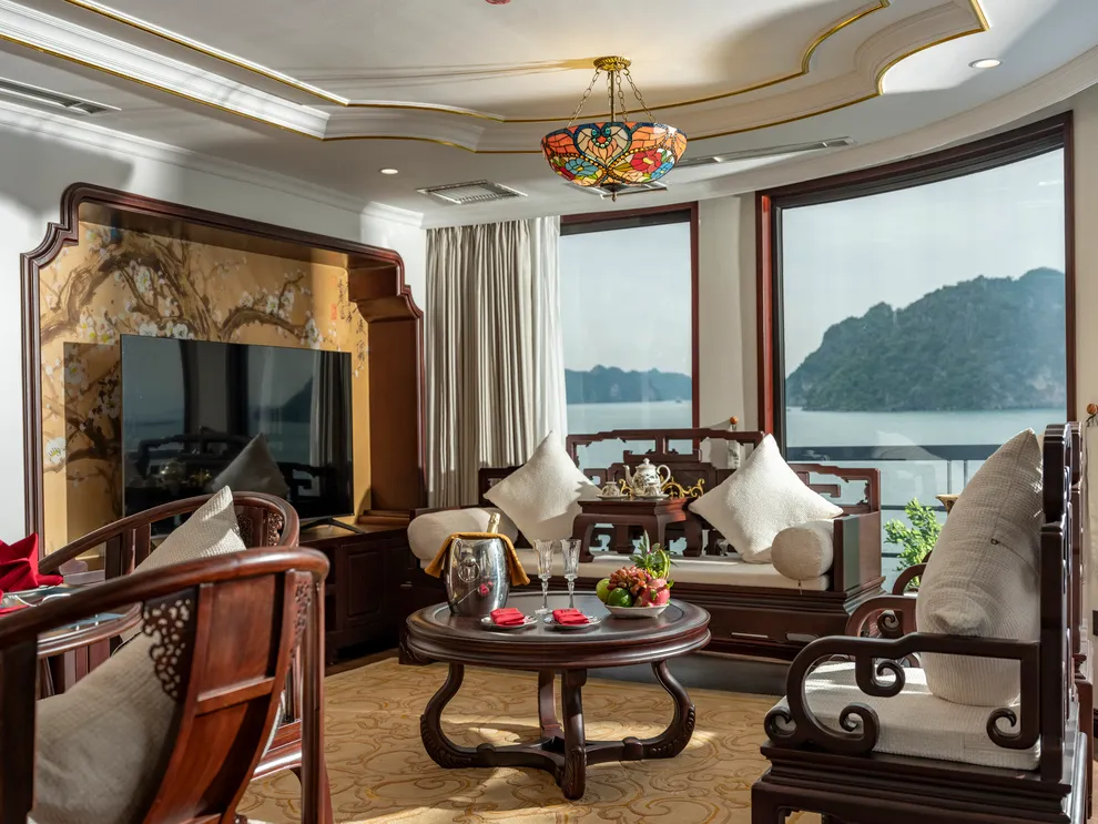 Với hạng phòng Royal Palace, quý khách sẽ có 01 quản gia riêng chăm sóc suốt 24h trong hải trình. Quản gia sẽ hỗ trợ sắp xếp bữa ăn, phục vụ tiệc trà chiều riêng, chuẩn bị nước tắm và hỗ trợ mọi yêu cầu cá nhân của quý khách.
