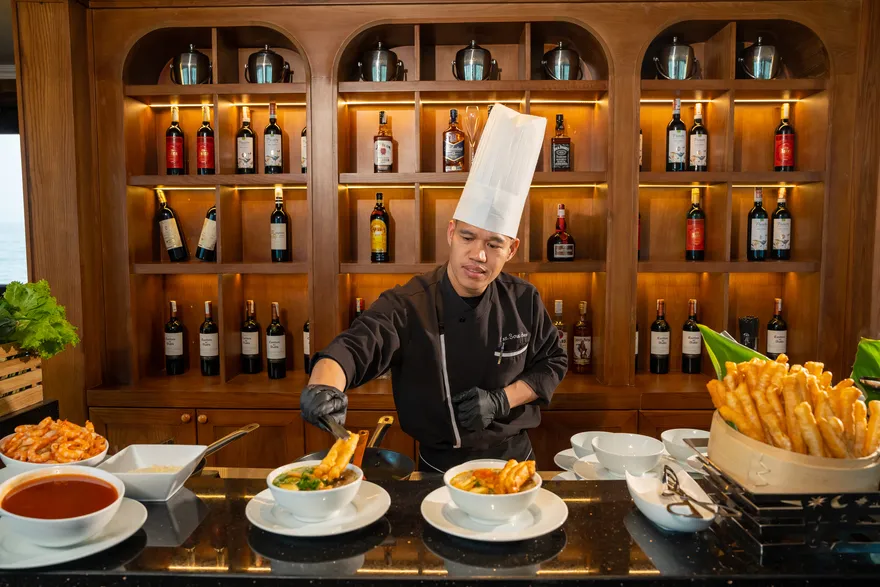 Dù thực đơn buffet rất đa dạng, nhưng sự an toàn của bạn là trên hết. Bạn hãy thông báo cho nhân viên tư vấn ngay tại thời điểm đặt tour hoặc báo cho quản lý tàu khi vừa lên boong. Đội ngũ đầu bếp của Lavoya luôn sẵn sàng chế biến riêng các suất ăn đảm bảo không chứa các thành phần gây dị ứng, giúp bạn tận hưởng bữa ăn mà không cần lo lắng về sức khỏe.