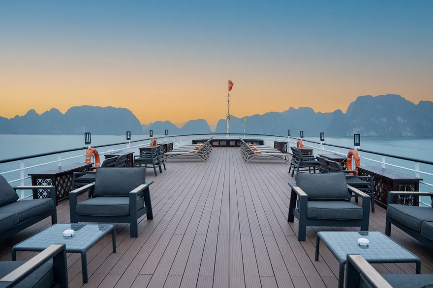 Du thuyền Lavoya Boutique Cruise sở hưu sundeck với tầm view 360 giúp du khách có thể ngắm nhìn toàn cảnh Vịnh Hạ Long