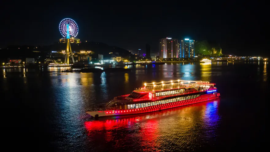 Thưởng thức buffet tối thịnh soạn và xem chương trình nghệ thuật “Vũ điệu ánh sáng”. Giải trí đa tầng: Nhạc DJ tại tầng 1, xem phim tại tầng 2 hoặc nghe ban nhạc quốc tế tại boong thượng.