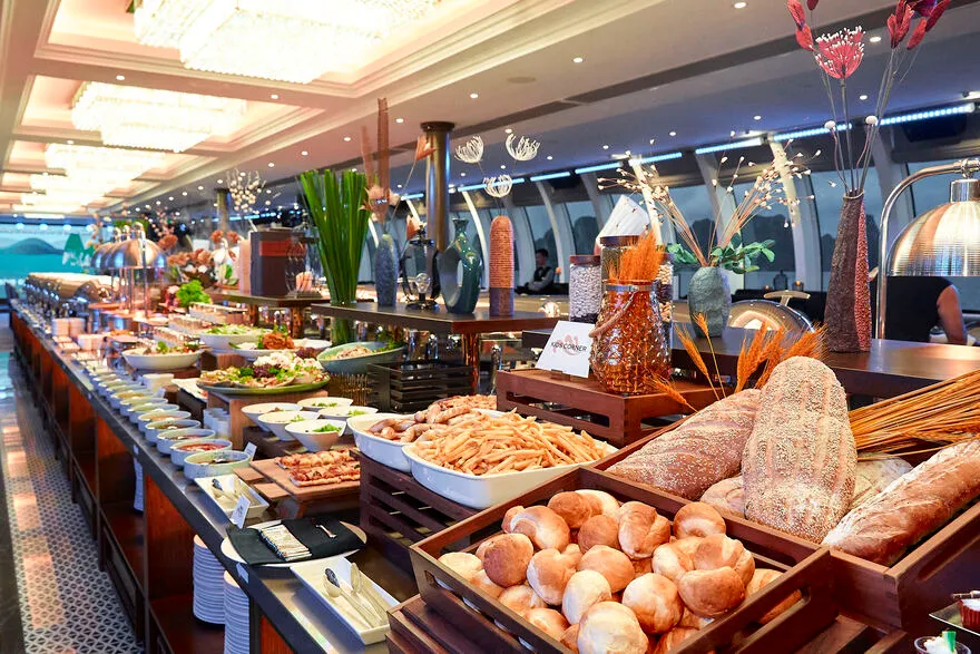 Đây là lựa chọn phổ biến cho các hải trình trong ngày và buổi tối, mang đến sự kết hợp giữa tinh hoa Á – Âu và đặc sản địa phương: