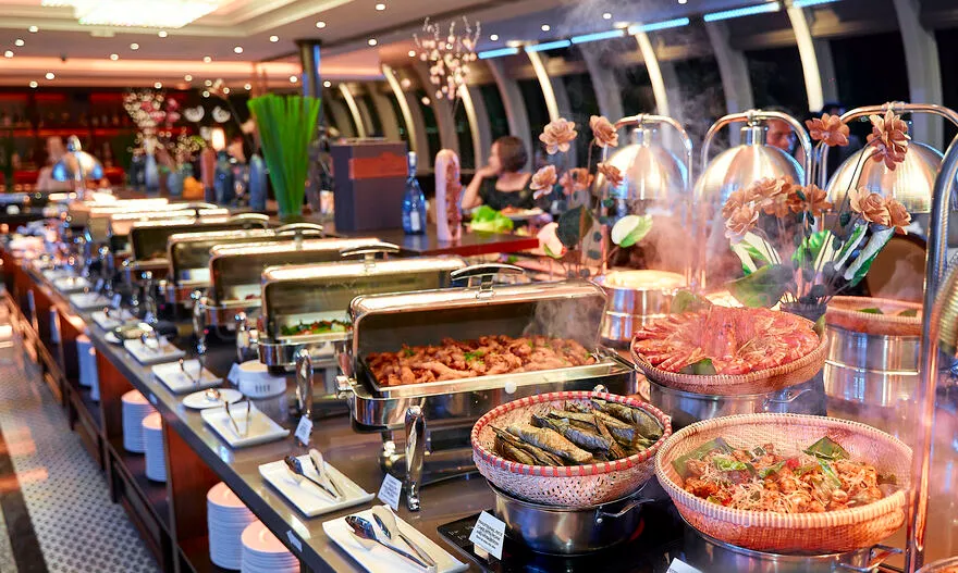 Thưởng thức tiệc buffet trưa thịnh soạn với hàng trăm món Á – Âu và đặc sản địa phương.