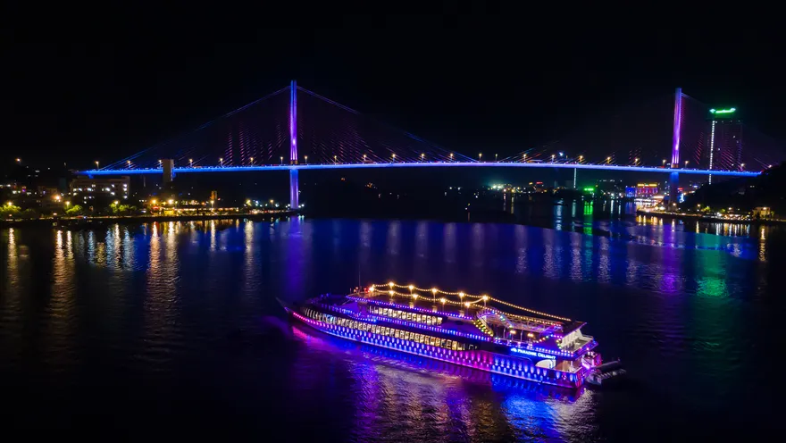 Hành trình tối còn là sự tôn vinh quyền tự do cá nhân thông qua mô hình “giải trí đa tầng”. Tùy vào tâm trạng lúc đó, bạn có thể lựa chọn hòa mình vào sự sôi động của nhạc DJ tại tầng 1, thư giãn với những bộ phim bom tấn tại rạp chiếu phim tầng 2, hay đơn giản là cầm một ly cocktail, bước lên boong thượng (Sundeck) để đón luồng gió biển mát rượi và ngắm nhìn cầu Bãi Cháy rực rỡ từ xa. 4 tiếng trên tàu không chỉ là một bữa ăn tối, mà là một khoảng lặng cần thiết để bạn tái tạo năng lượng, kết nối sâu sắc hơn với những người thân yêu trong một bối cảnh di sản diễm lệ bậc nhất thế giới.