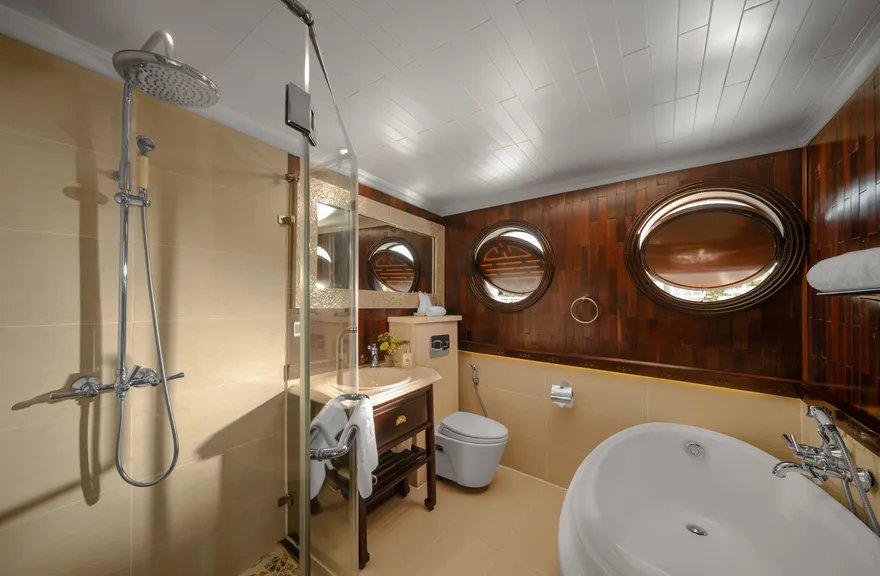 Về mặt kiến trúc, du thuyền là một tác phẩm nghệ thuật được chắp bút bởi kiến trúc sư người Pháp Anne Droussie, thể hiện sự giao thoa hài hòa giữa phong cách cổ điển Đông Dương và những đường nét hiện đại của phương Tây. Toàn bộ thân tàu sử dụng thép cường lực cao và được đóng tại Nhà máy đóng tàu Z189 (thuộc Bộ Quốc phòng), đảm bảo mỗi chi tiết khung thép đều đạt độ bền tối ưu theo tiêu chuẩn kỹ thuật quân sự khắt khe. Với chiều dài dao động từ 55.29m đến 56.0m và chiều rộng 10.43m, con tàu được thiết kế với cấu trúc 4 tầng chức năng, có khả năng duy trì trạng thái cân bằng ngay cả khi bị nghiêng một góc lên tới 23 độ. Hệ thống an toàn hàng hải tại đây vượt trên các yêu cầu pháp lý tối thiểu với các thiết bị hiện đại như đài VHF, định vị vệ tinh GPS, hệ thống báo động xâm nhập nước tự động và hệ thống báo cháy đạt chuẩn quốc tế.