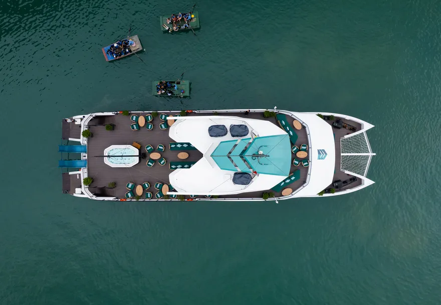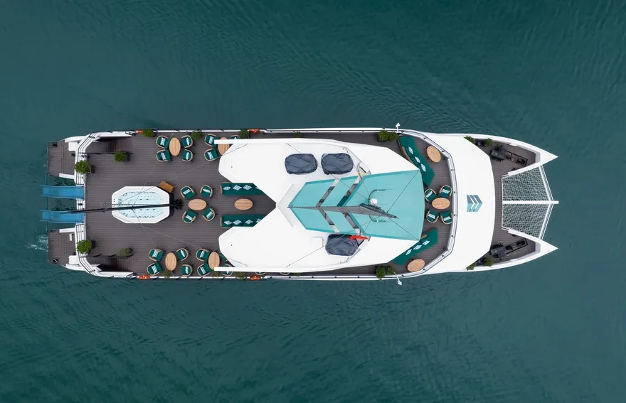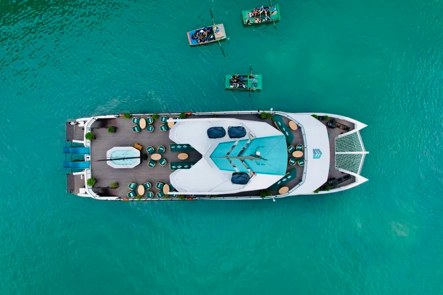 Sở hữu thiết kế hai thân (catamaran) hiện đại mang đậm phong cách phương Tây, du thuyền mang lại sự ổn định tuyệt đối cùng không gian khoáng đạt vượt mức mong đợi. Hãy sẵn sàng để rũ bỏ mọi lo toan và đắm mình vào vẻ đẹp huyền ảo của vịnh Hạ Long – Lan Hạ trên một “biểu tượng kiến trúc” vỏ thép 5 sao, nơi mọi trải nghiệm đều được định nghĩa lại bằng sự tinh tế và khác biệt.