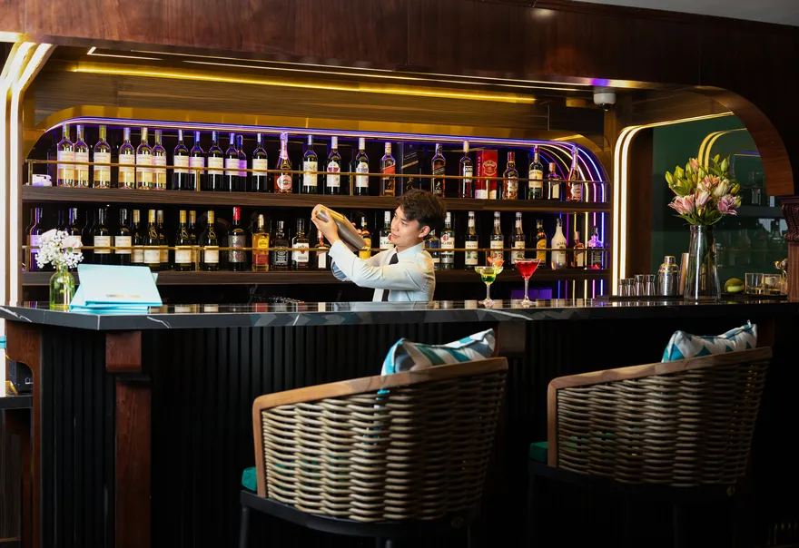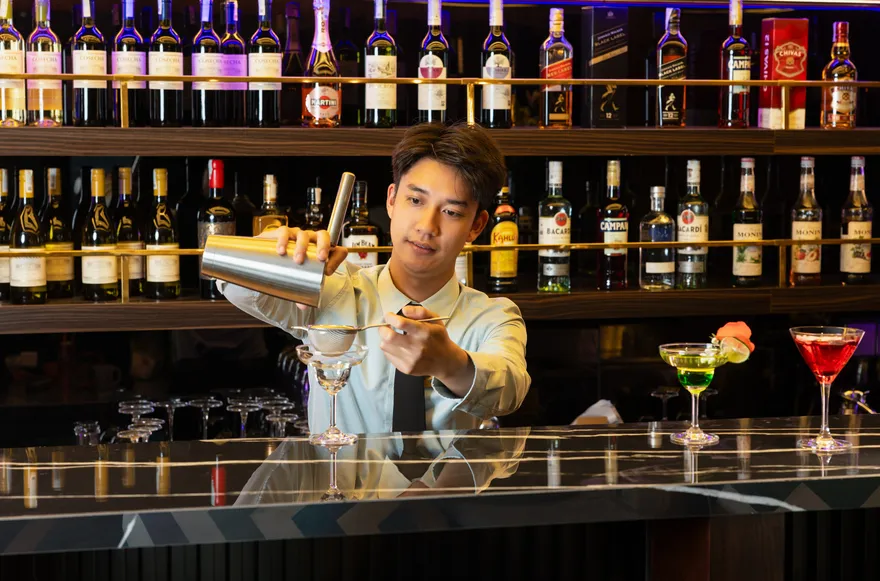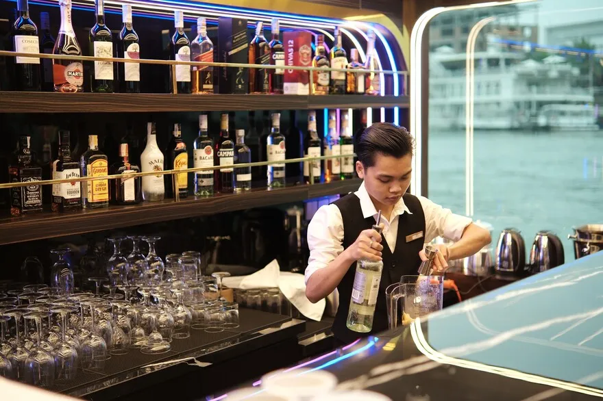 Thưởng thức bữa trưa hải sản thượng hạng do đội ngũ đầu bếp chuyên nghiệp chuẩn bị. Quầy bar phục vụ các loại cocktail và rượu vang trong suốt bữa ăn.
