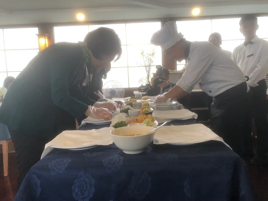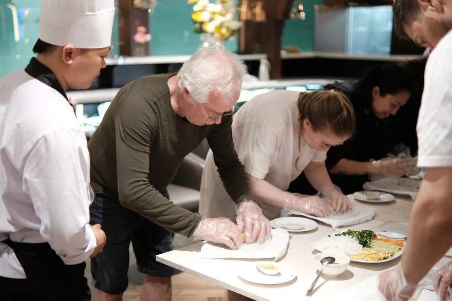 Tham gia lớp học nấu ăn, học cách làm món nem tươi cuốn truyền thống của Việt Nam .