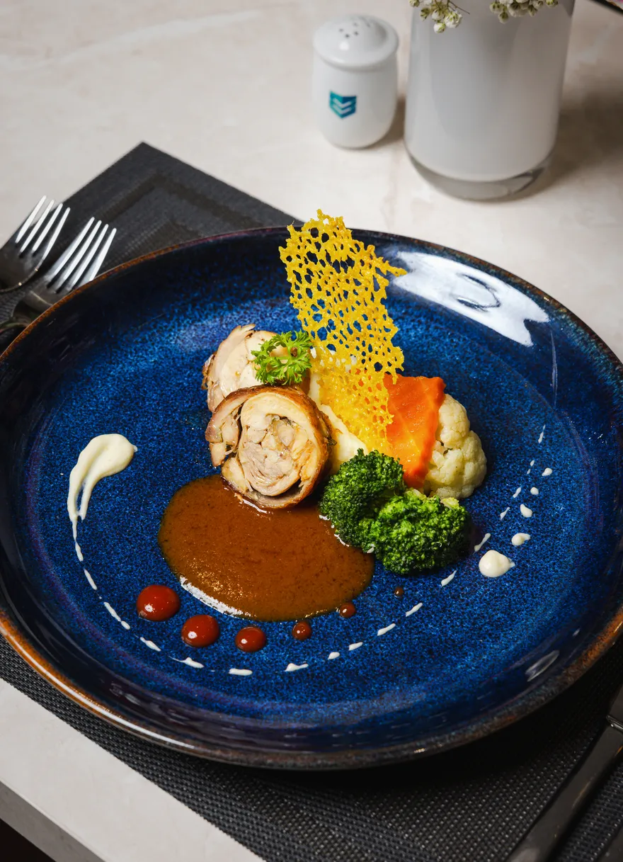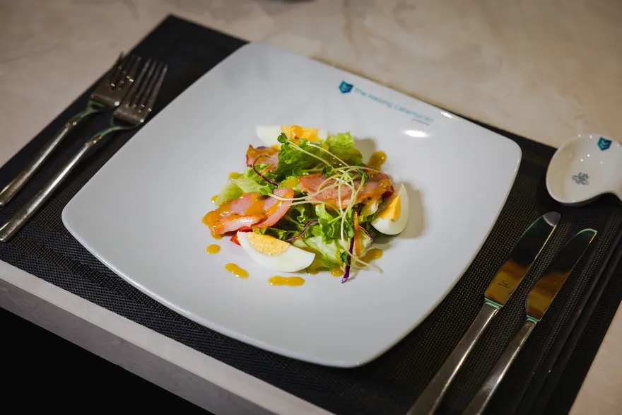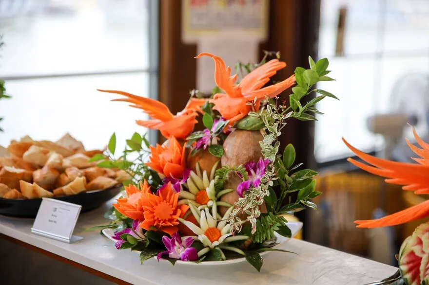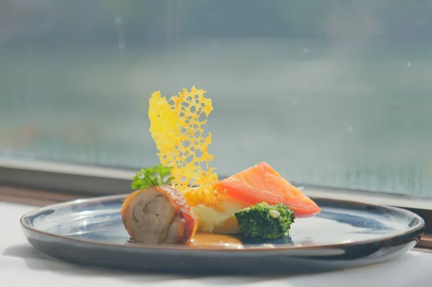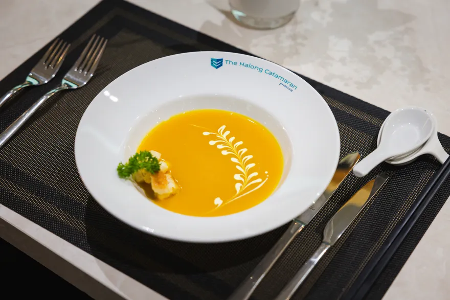 Sự tinh tế của dòng du thuyền Premium còn nằm ở việc tôn trọng và thấu hiểu nhu cầu riêng biệt của từng thực khách thông qua thực đơn chay đa dạng. Bạn vẫn sẽ cảm thấy được nuông chiều vị giác với các món ăn thanh đạm nhưng đầy đủ dưỡng chất như súp kem bí đỏ béo bùi, nem rau củ quả với nấm tươi giòn rụm hay các món cà ri rau củ đậm đà hương vị. Từng chi tiết nhỏ từ việc lựa chọn nguyên liệu tươi sạch đến cách trình bày đẹp mắt đều minh chứng cho tâm huyết của du thuyền trong việc nâng tầm trải nghiệm cho mọi du khách.