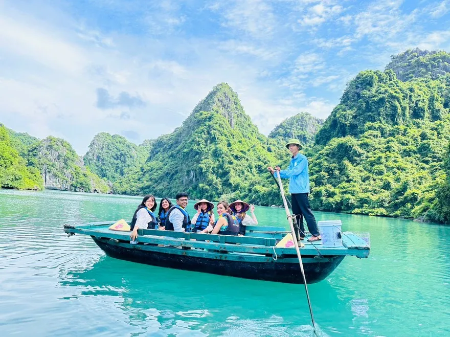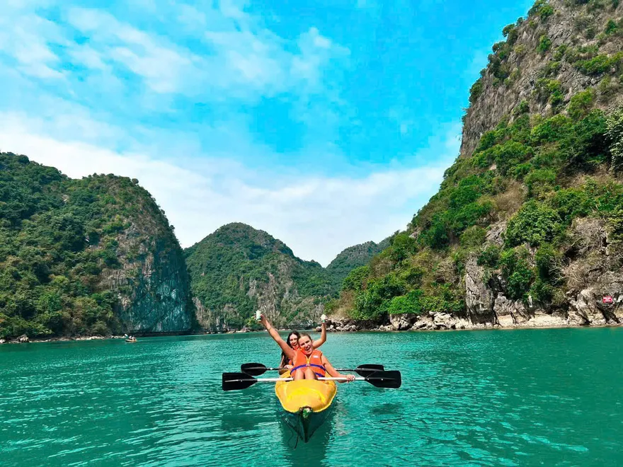 Đối với những tâm hồn muốn thực sự “đi trốn” khỏi sự ồn ào, hải trình 6 tiếng (Full Day) sẽ đưa bạn vào một hành trình “không lối mòn” tiến sâu vào vùng lõi Vịnh Lan Hạ tĩnh lặng. Điểm nhấn của chuyến đi này là hoạt động khám phá Hang Sáng Tối – một kiệt tác thiên nhiên với hang động dài 100m xuyên qua núi, nơi bạn có thể tự mình chèo thuyền Kayak hoặc thong dong trên thuyền nan do người dân địa phương chèo để cảm nhận sự kỳ vĩ của những đầm phá khép kín. Sau đó, khu vực Ao Ếch với làn nước trong xanh sẽ là nơi lý tưởng để bạn thỏa sức bơi lội, vui chơi trên phao nổi hoặc trải nghiệm cầu trượt nước đầy phấn khích.