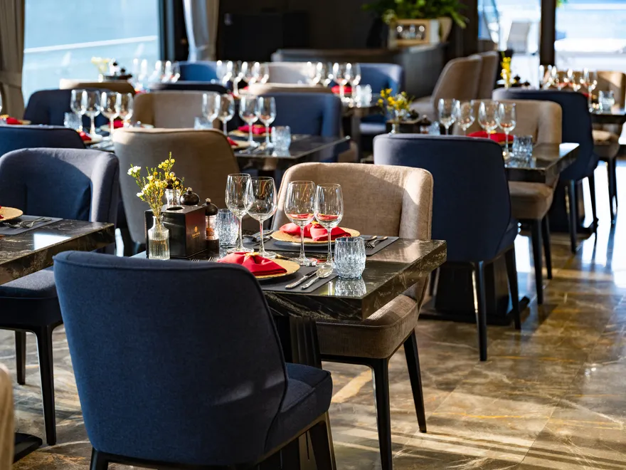 Bữa tối Fine Dining sang trọng tại nhà hàng Signature tầng 4.