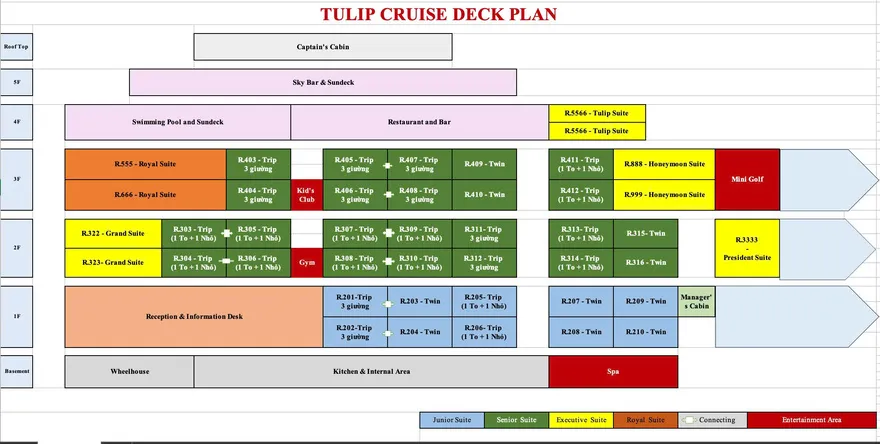 • Có 10 phòng. nằm ở Tầng 1 (1st Deck).
