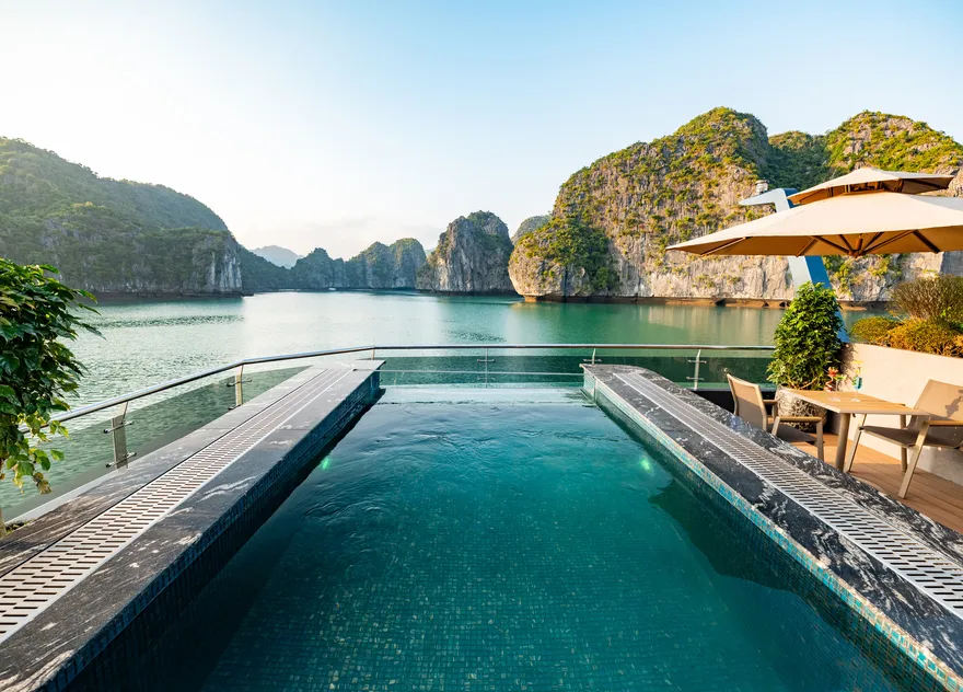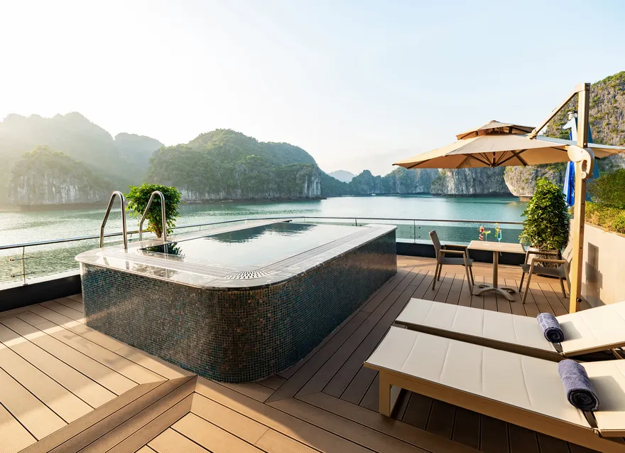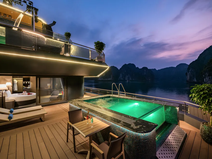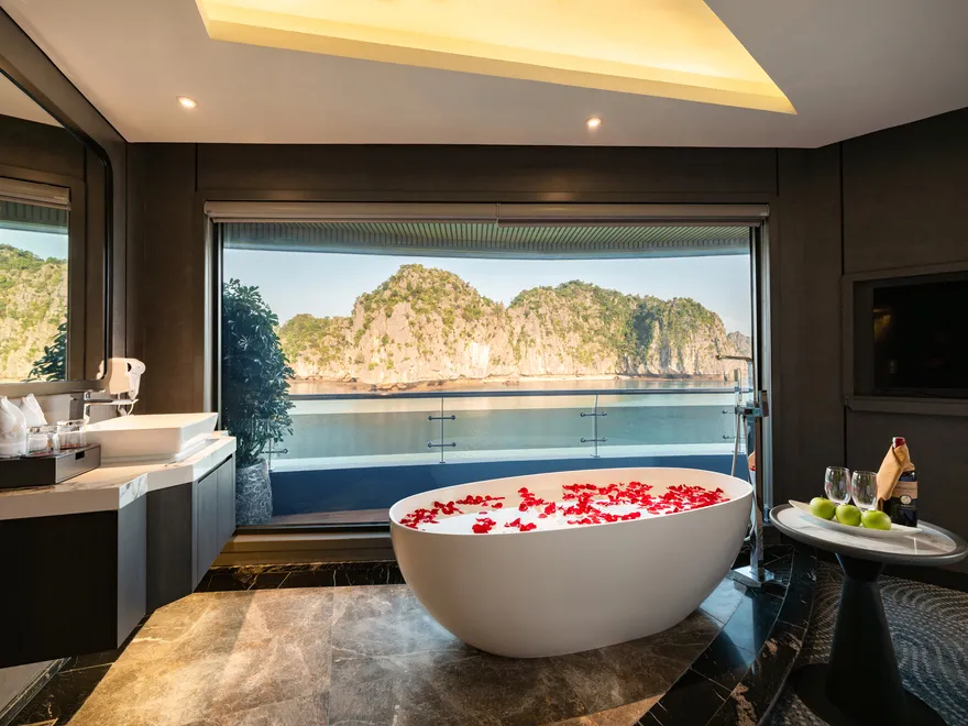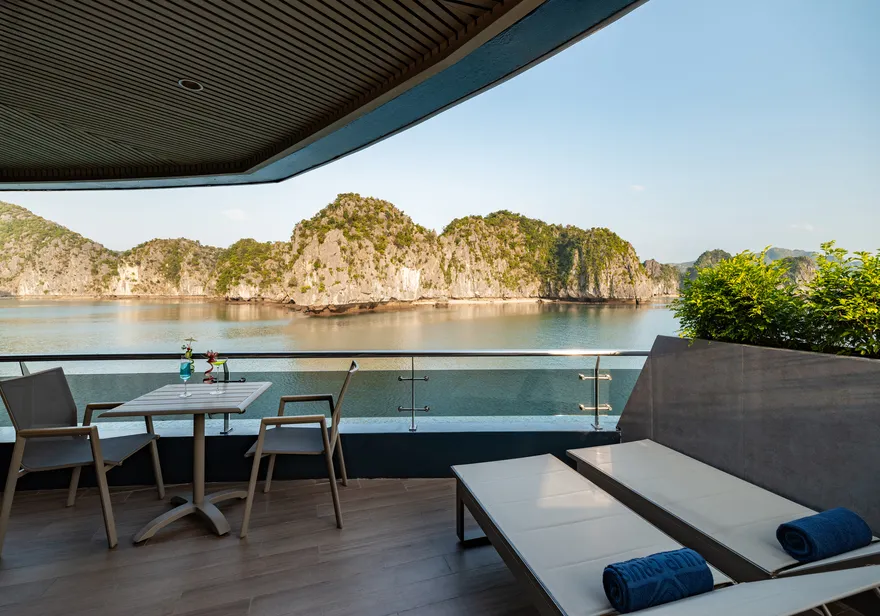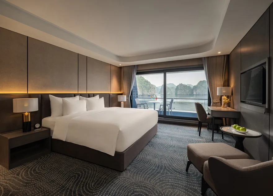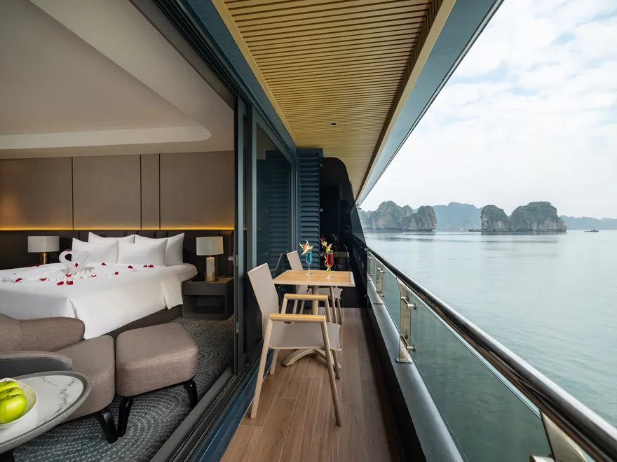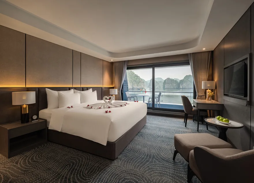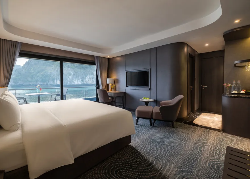 • Có 02 phòng. nằm ở Tầng 3 và Tầng 4 (vị trí mũi tàu hoặc đuôi tàu để lấy view rộng nhất).