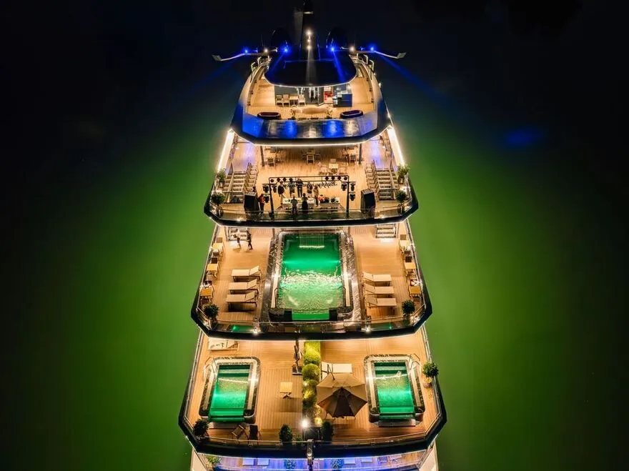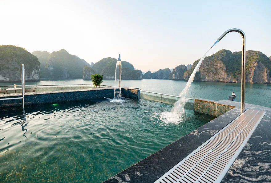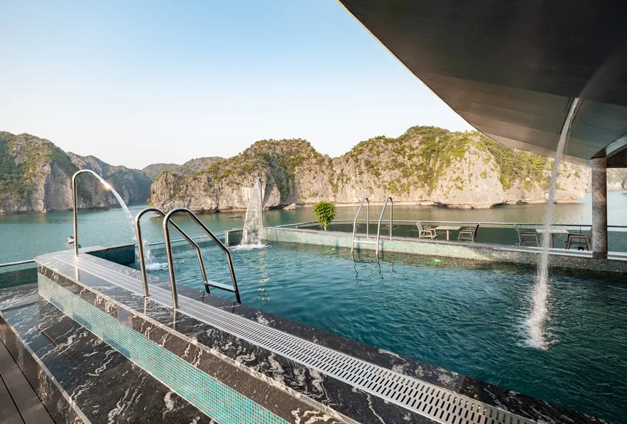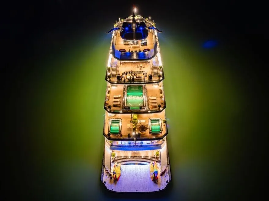 Đây chính là điểm ưu việt trong thiết kế của Tulip Cruise. Du thuyền được trang bị hệ thống thang máy hiện đại kết nối giữa các tầng. Điều này giúp người cao tuổi hoặc những người gặp khó khăn trong việc vận động có thể di chuyển dễ dàng từ cabin lên nhà hàng, bể bơi hay Sky Bar mà không tốn quá nhiều sức lực.