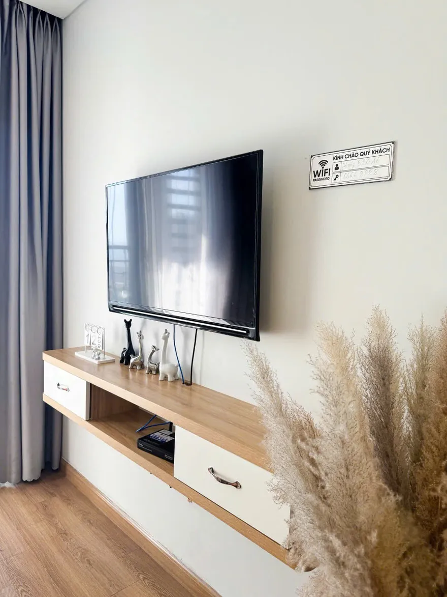 Căn hộ được trang bị đường truyền cáp quang riêng biệt (không dùng chung với cả tầng), tốc độ cam kết tối thiểu 80Mbps. Bạn có thể thoải mái họp Zoom, livestream hoặc xử lý công việc ngay tại bàn trà view biển mà không lo gián đoạn.