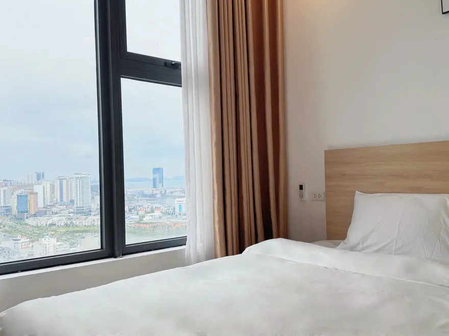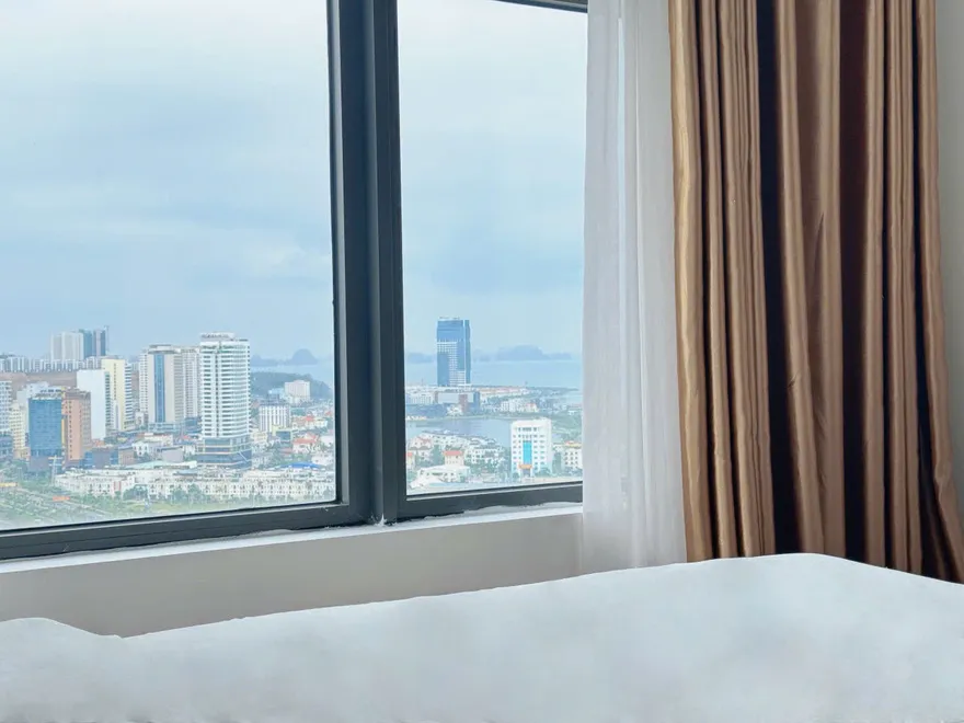 Đánh thức mọi giác quan với trải nghiệm lưu trú đẳng cấp tại căn hộ “hoa hậu” B2817 – tọa độ nghỉ dưỡng lý tưởng trên tầng 28 của tòa tháp Green Bay Garden (Bim 30) với tầm nhìn “triệu đô” ôm trọn kỳ quan vịnh Hạ Long. Không chỉ là một điểm dừng chân, B2817 được thiết kế như một tổ ấm thứ hai mang đậm hơi thở đại dương, sở hữu diện tích “vàng” tới 70m2 với 2 phòng ngủ rộng rãi, đặc biệt phù hợp cho những chuyến du lịch gia đình hay nhóm bạn từ 4 đến 6 người. Ngay khi bước qua cánh cửa, bạn sẽ bị cuốn hút bởi không gian mở tinh tế, nơi phòng khách và khu bếp hiện đại kết nối liên hoàn, tạo nên bầu không khí sum vầy đầy ấm cúng. Gian bếp với kính ốp xanh ngọc biển tươi mát và đầy đủ trang thiết bị cao cấp luôn sẵn sàng để bạn tự tay chế biến những bữa tiệc hải sản tươi ngon, trong khi phong cách decor tối giản (Minimalism) với tranh Matisse và vách gỗ sang trọng mang lại một mỹ cảm thư thái tuyệt đối. Đặc biệt nhất chính là phòng ngủ Master với hệ cửa sổ kịch trần hướng biển, cho phép bạn thu trọn vẻ đẹp hùng vĩ của vịnh di sản ngay khi vừa thức giấc, mang đến một kỳ nghỉ vừa tiện nghi, riêng tư lại vô cùng kinh tế so với việc đặt nhiều phòng khách sạn truyền thống.