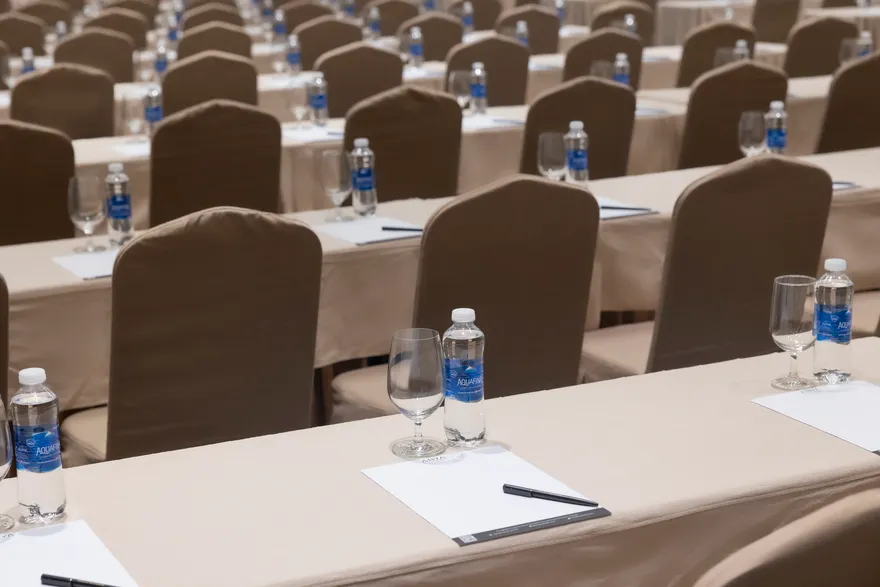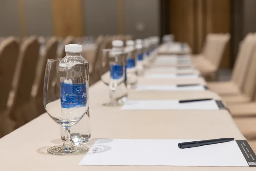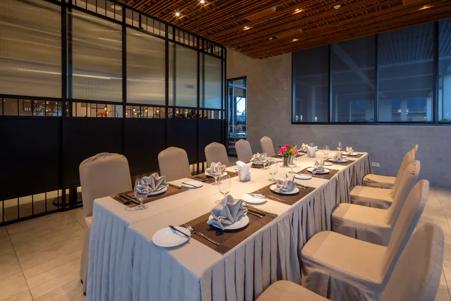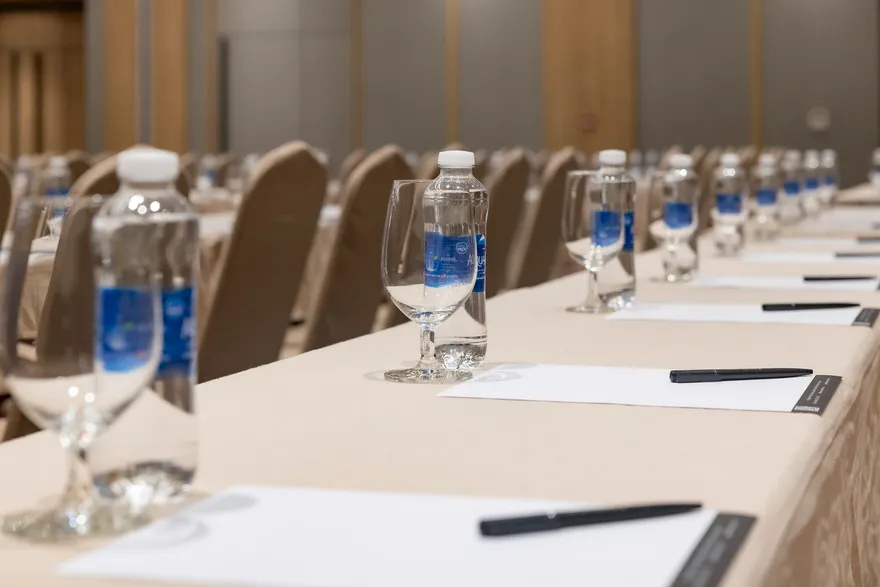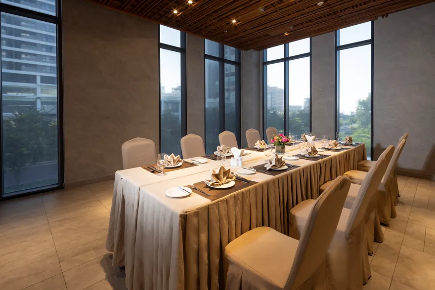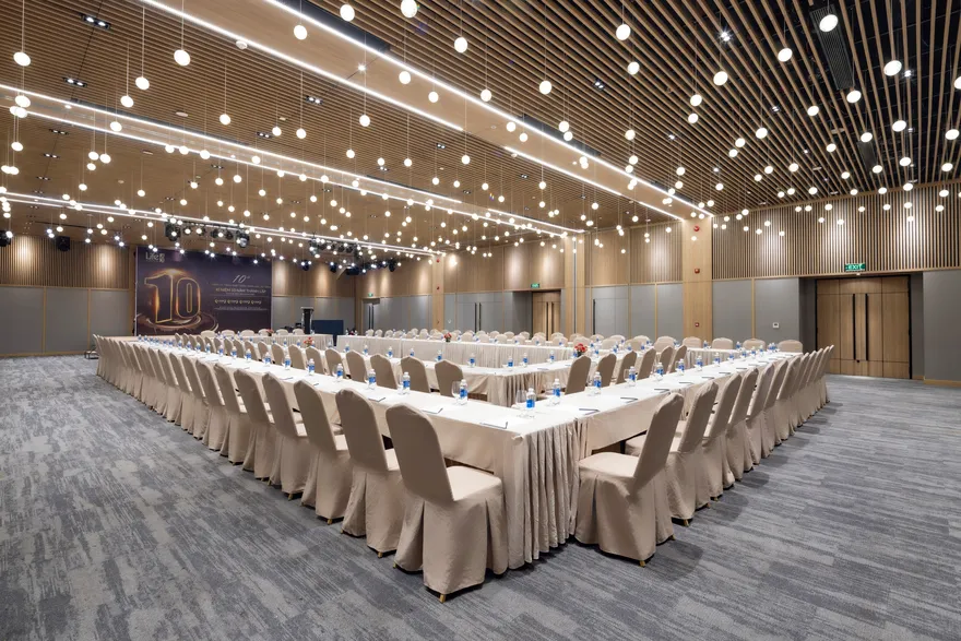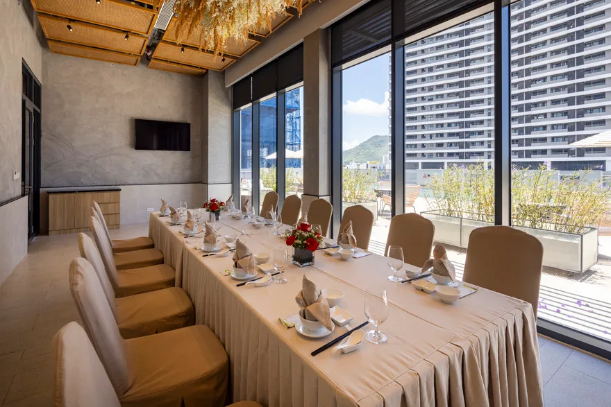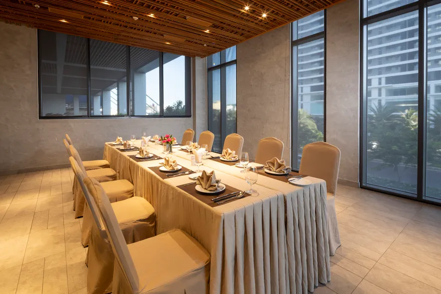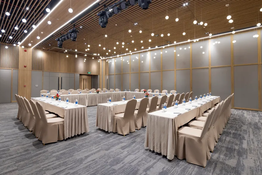 Hệ thống phòng hội nghị được đầu tư thiết bị nghe nhìn tiên tiến, màn hình LED và hệ thống âm thanh tiêu chuẩn cho hội thảo quốc tế.