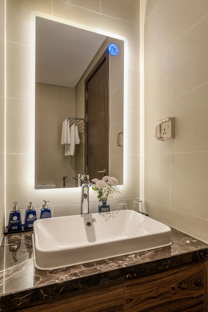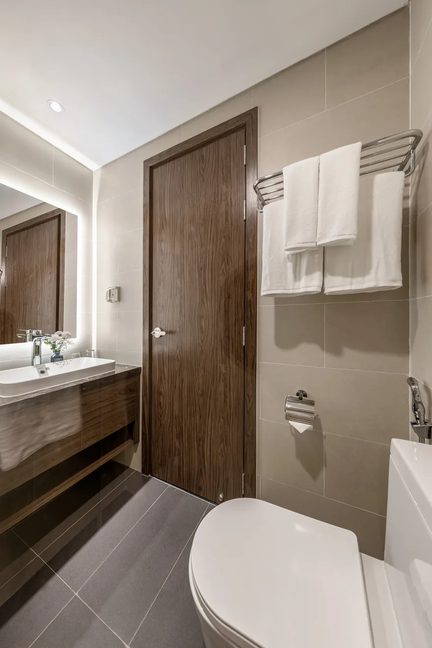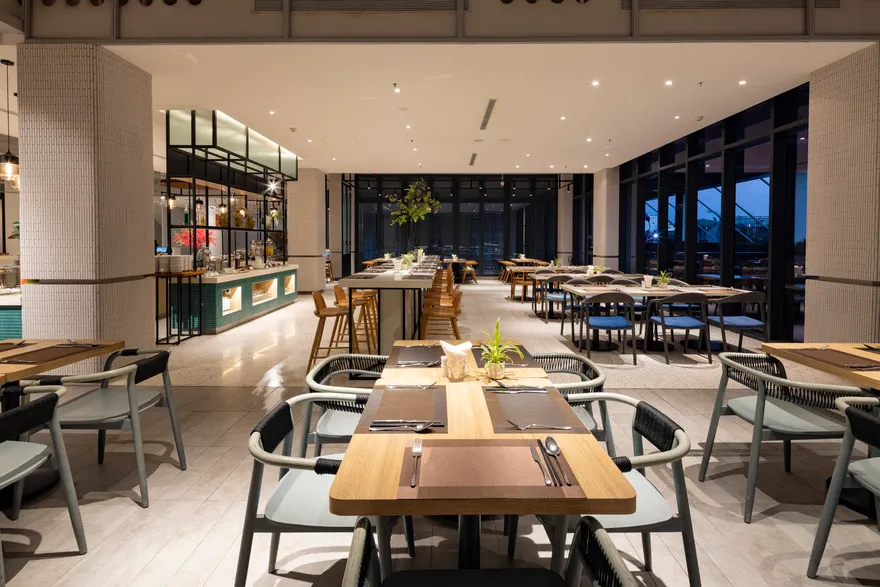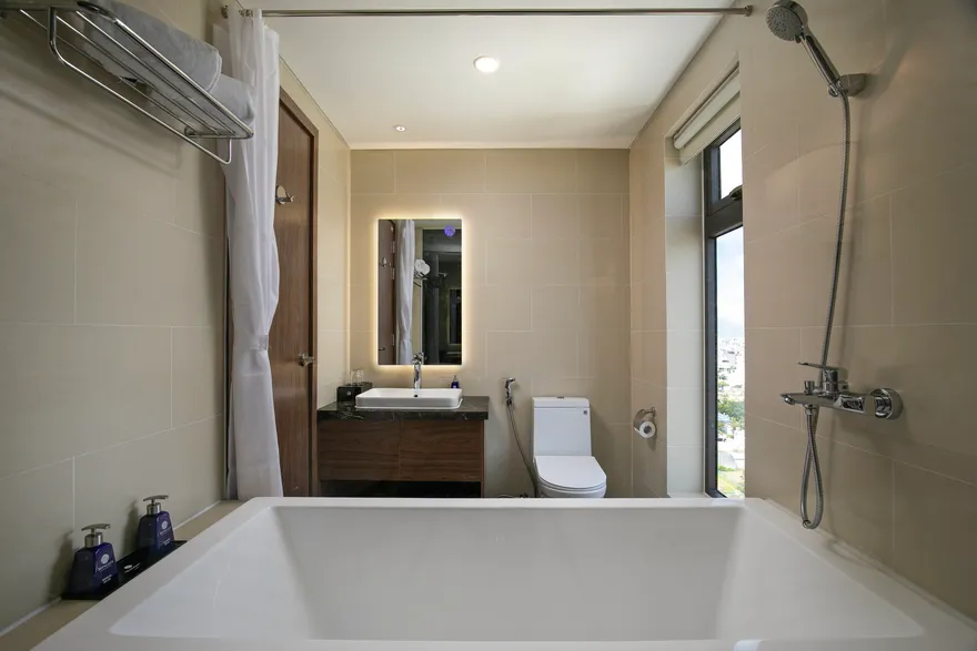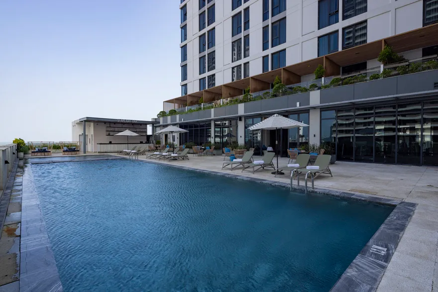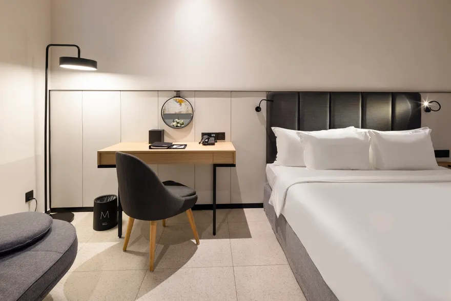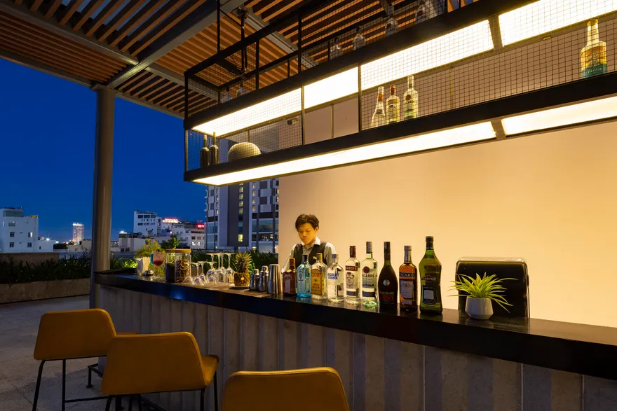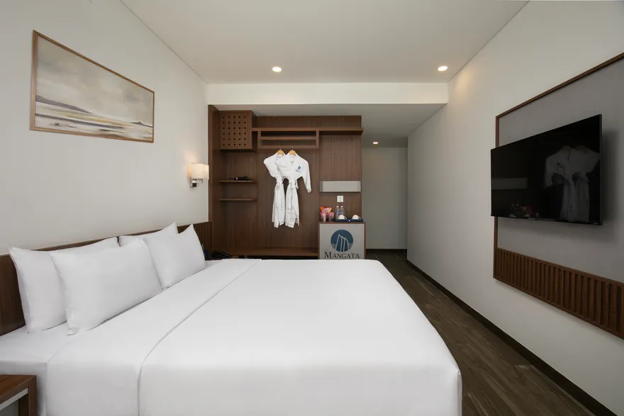 Kiến trúc của tòa nhà 21 tầng này mang đậm dấu ấn đương đại với những gam màu nhạt như trắng xám và vàng ấm. Cách bài trí này không hề ngẫu nhiên mà nhắm thẳng vào cảm giác thư thái của du khách. Bước vào phòng, sự mềm mại của nội thất và ánh sáng vàng dịu nhẹ sẽ giúp tâm trí bạn lắng xuống ngay lập tức. Với 229 phòng nghỉ được phân cấp rõ ràng, khách sạn đáp ứng trọn vẹn mọi nhu cầu lưu trú. Từ những căn phòng Deluxe tinh tế cho khách công tác, đến hạng phòng Deluxe Pool Terrace độc đáo với ban công hướng thẳng ra hồ bơi tầng 3 đầy cây xanh, hay Executive Suite sang trọng dành cho những ai muốn thức dậy với tầm nhìn đại dương bao la, tất cả đều chú trọng vào chất lượng giấc ngủ và sự tiện nghi tối đa.