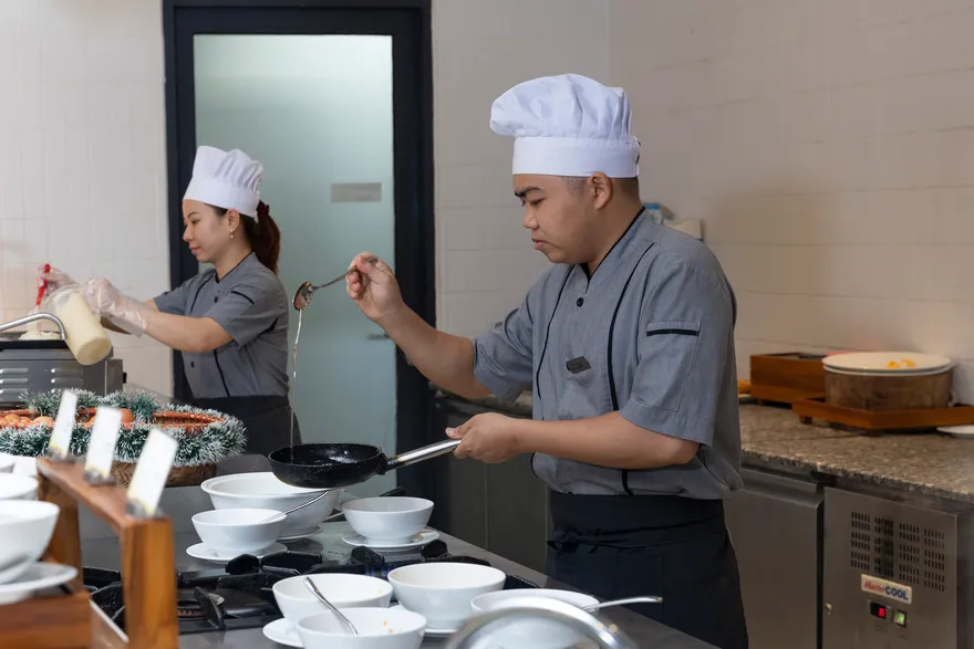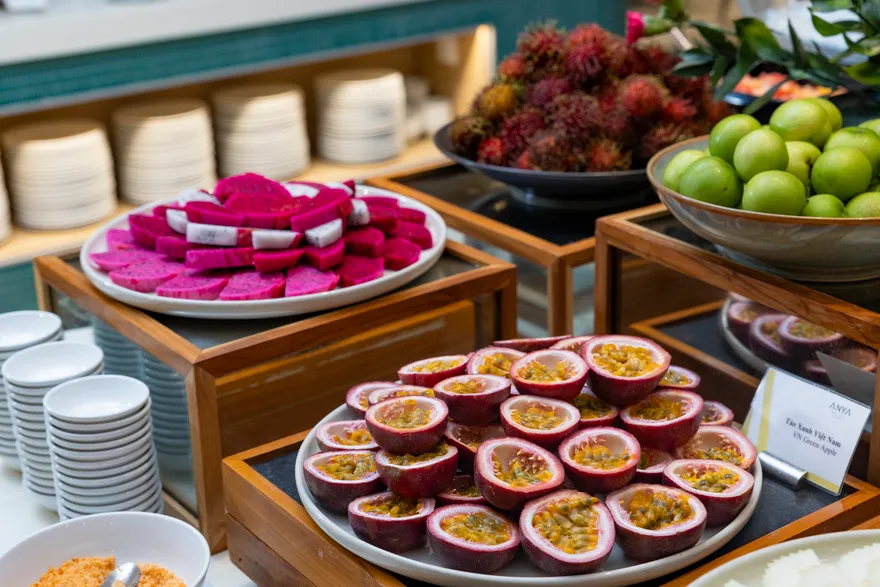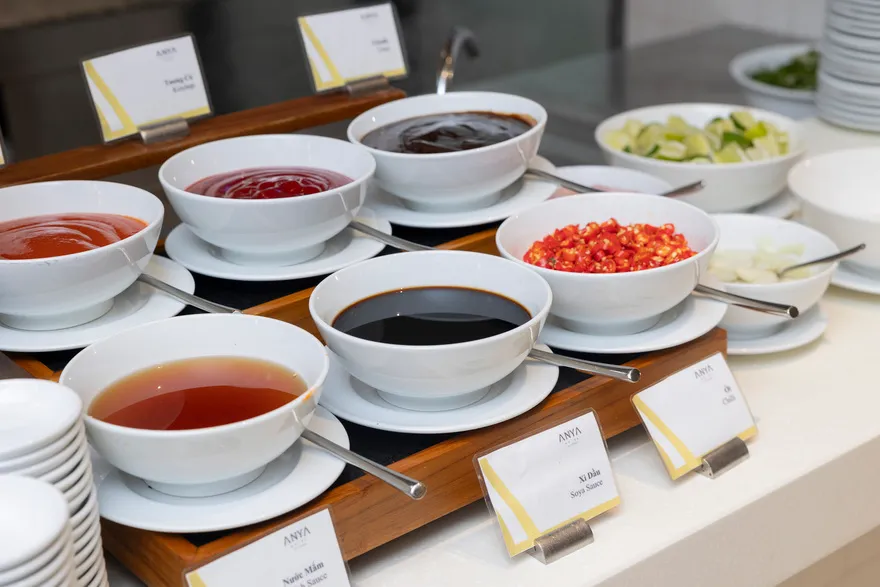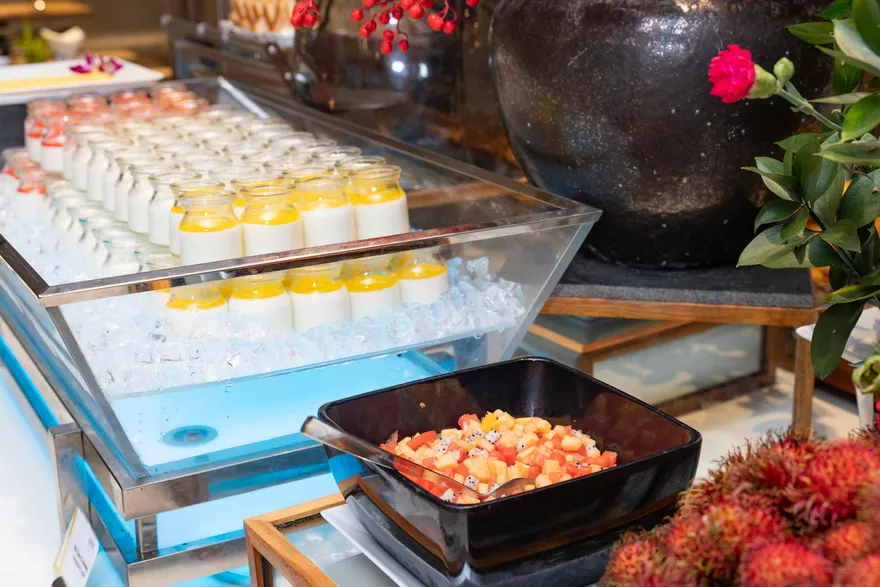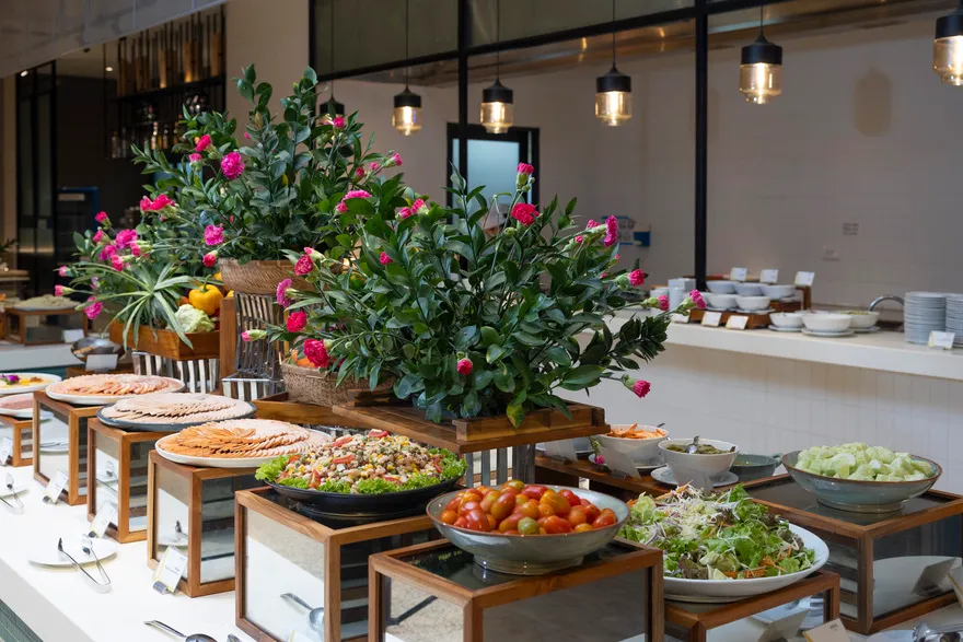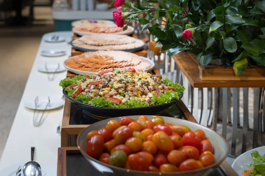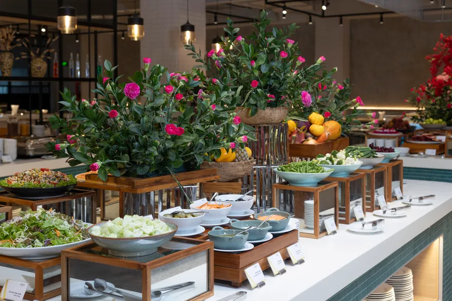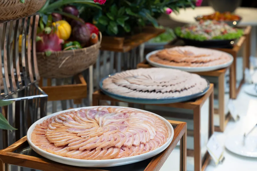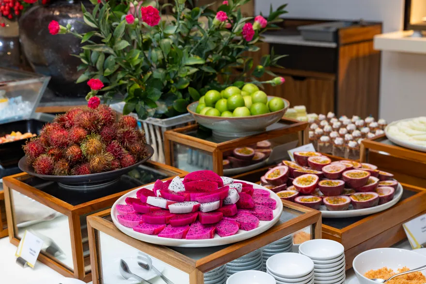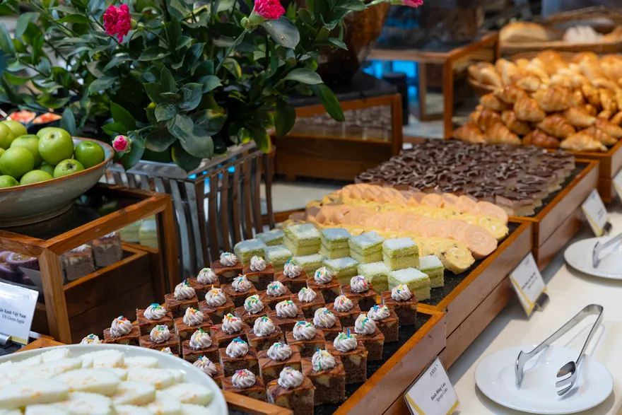 Thực đơn buffet là sự kết hợp giữa các món quốc tế và đặc sản địa phương Bình Định, được chế biến từ nguyên liệu tươi sống mỗi ngày.
