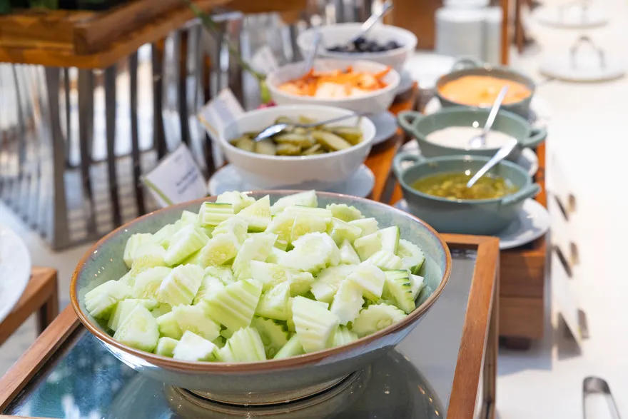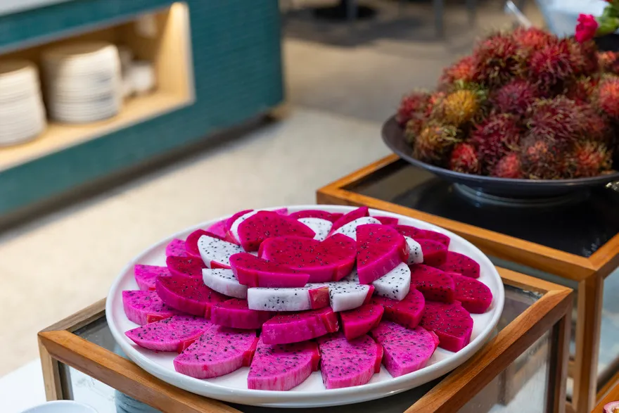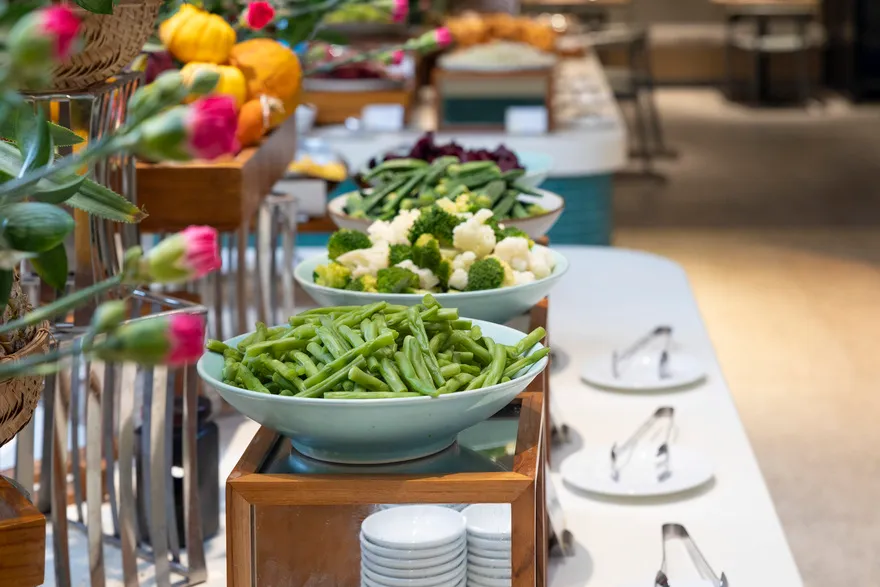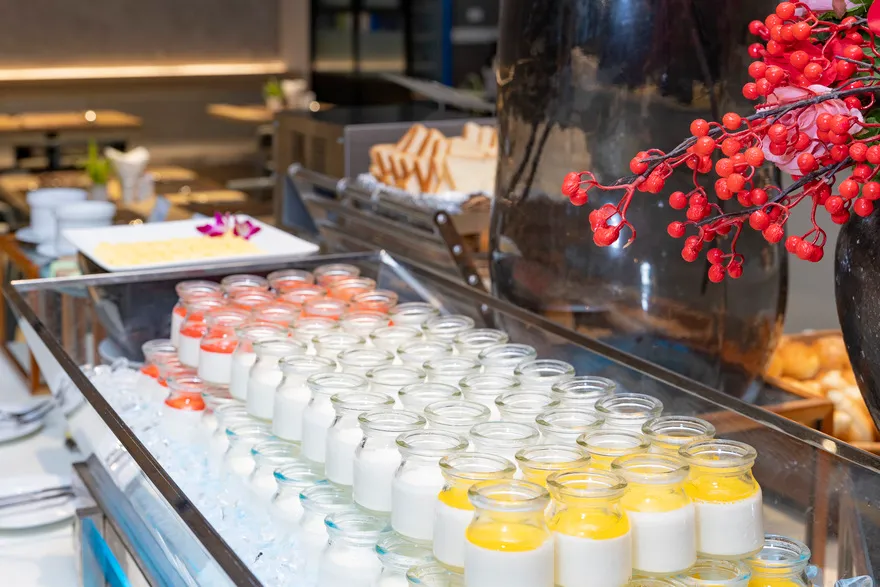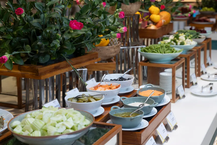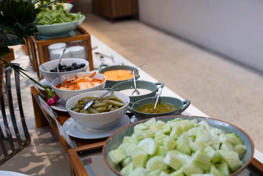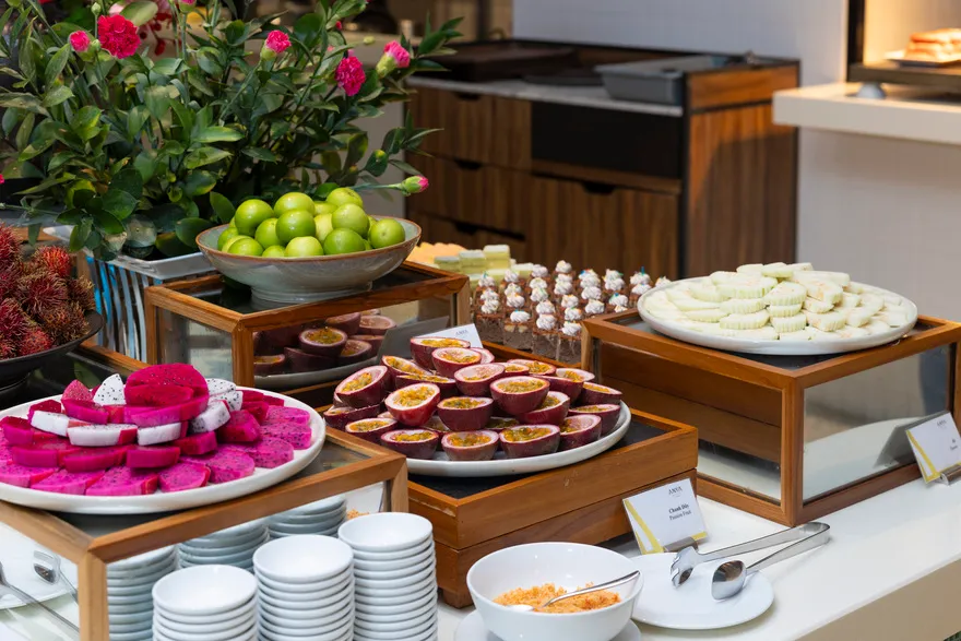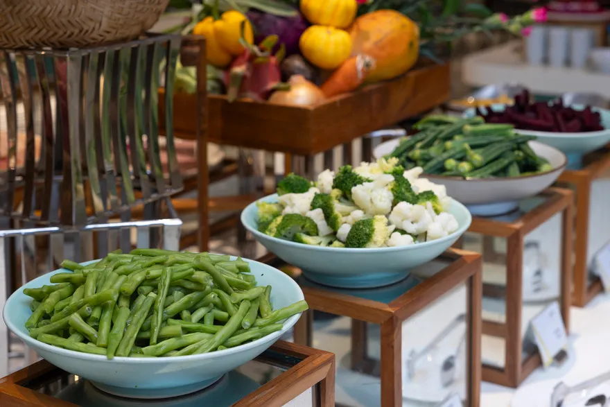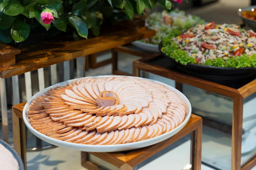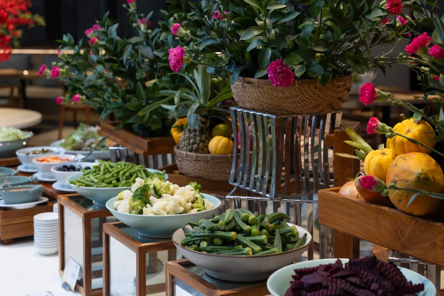 Thực đơn buffet là sự kết hợp giữa các món quốc tế và đặc sản địa phương Bình Định, được chế biến từ nguyên liệu tươi sống mỗi ngày.