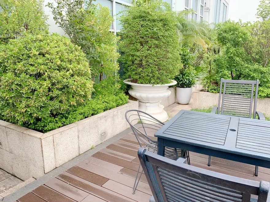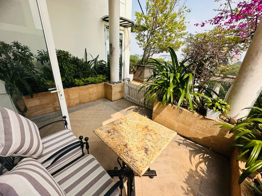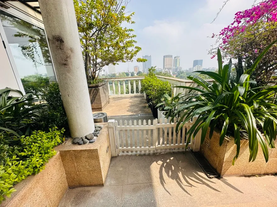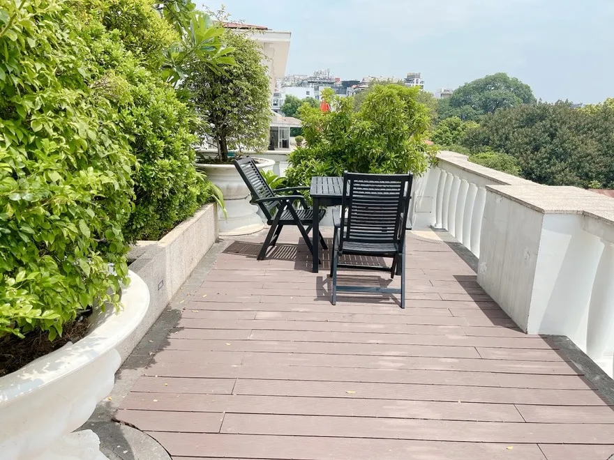 Cửa sổ hướng vào vườn treo hoặc không gian nội khu giúp cách âm hoàn hảo, loại bỏ hoàn toàn tiếng ồn từ phố Hàng Trống.
