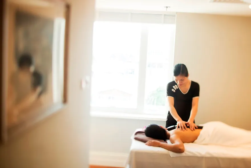 Hot stone therapy (Đá nóng): Sử dụng nhiệt năng từ đá để tác động sâu vào các mô cơ, thường kéo dài 90 phút với giá 1.200.000 VNĐ.