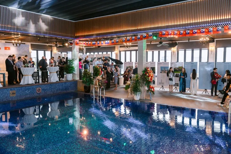 Hà Nội là thành phố nội lục, tuy nhiên khách sạn đã khéo léo bù đắp trải nghiệm mặt nước cho du khách thông qua các tiện ích độc đáo: