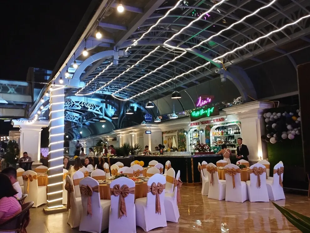 - Skybar (Tầng thượng): Sức chứa từ 80-100 khách, không gian mở thoáng đãng. Hệ thống âm thanh, ánh sáng, karaoke và màn hình LED đều có sẵn (có tính phí thuê).