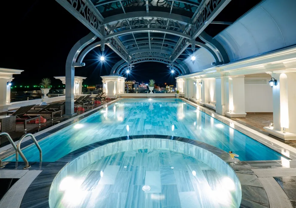 Không chỉ là nơi lưu trú, AVS Hotel còn ghi điểm với hệ thống tiện ích “all-in-one”. Điểm nhấn kiến trúc độc đáo nhất chính là hồ bơi vô cực mái vòm trên tầng thượng. Thiết kế mái vòm nghệ thuật này cho phép du khách thỏa sức bơi lội từ sáng sớm đến chiều tối mà không lo ngại nắng gắt hay những cơn mưa rào bất chợt. Bên cạnh đó, Y Spa & Wellness với hệ thống giường massage chuyên nghiệp luôn sẵn sàng phục vụ các liệu pháp trị liệu thư giãn. Khi màn đêm buông xuống, Lia’s Rooftop Bar & Grill với sức chứa lên đến 120 khách là không gian lý tưởng để thưởng thức những ly cocktail nồng nàn và tận hưởng gió biển lồng lộng từ trên cao.