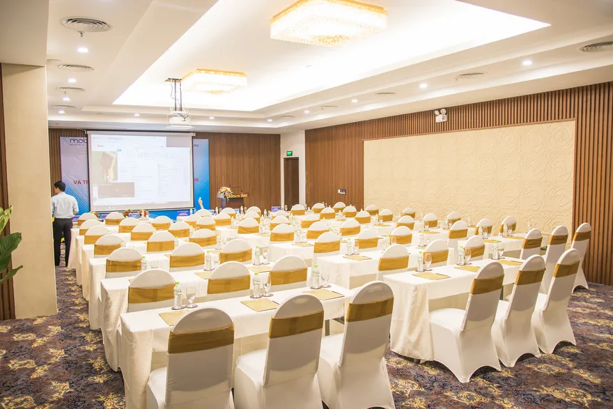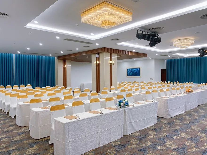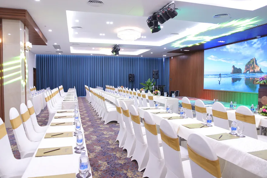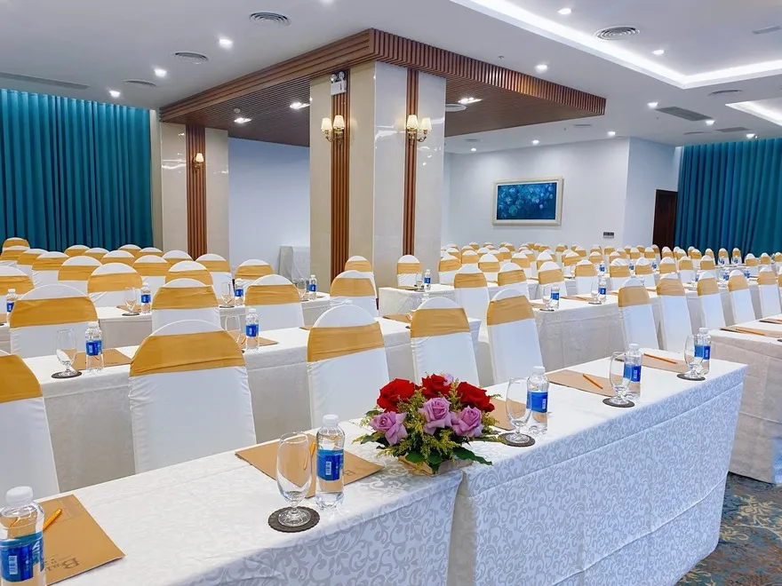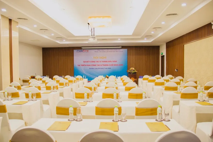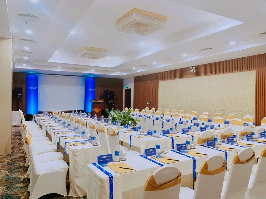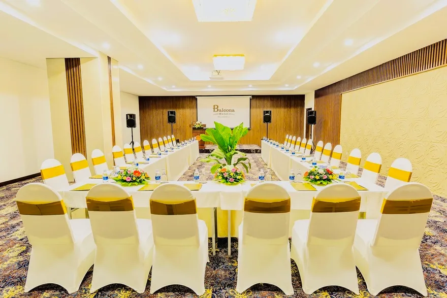 Không chỉ là nơi nghỉ dưỡng, Balcona Hotel Da Nang còn là bệ phóng cho những thành công rực rỡ với Trung tâm Hội nghị & Sự kiện (MICE) chuyên nghiệp. Với 6 loại phòng họp linh hoạt có diện tích từ 35 $m^2$ đến 469 m^2, chúng mình thấu hiểu rằng mỗi sự kiện đều cần một “sân khấu” xứng tầm để tỏa sáng. Những khán phòng như “The View” hay “Seaside” với sức chứa lên đến 250 khách không chỉ đáp ứng yêu cầu về không gian mà còn mang lại cảm hứng sáng tạo nhờ tầm nhìn hướng biển. Và cho những quyết định quan trọng cần sự kín đáo, hệ thống phòng ăn VIP riêng tư luôn sẵn sàng phục vụ, biến mỗi bữa tiệc trở thành một cầu nối bền chặt cho những mối quan hệ đối tác bền vững.
