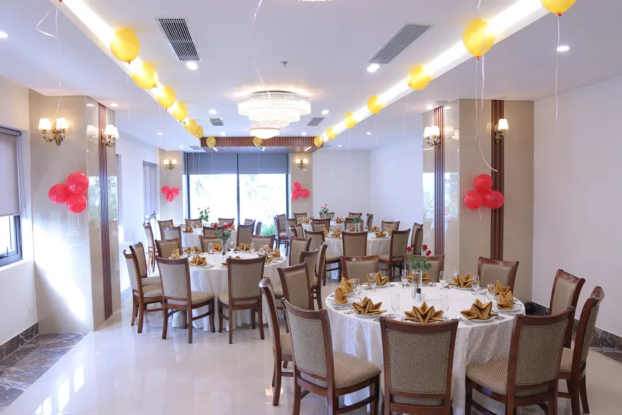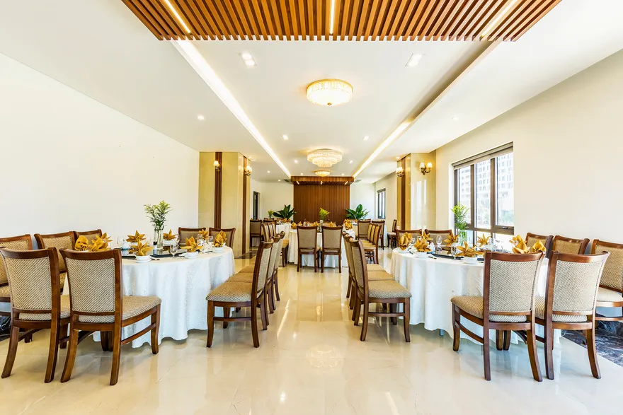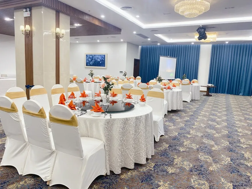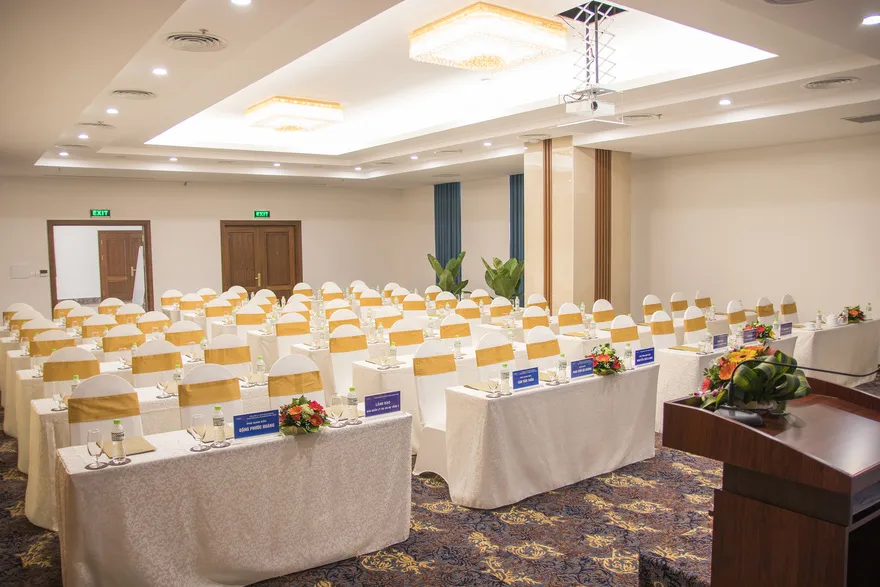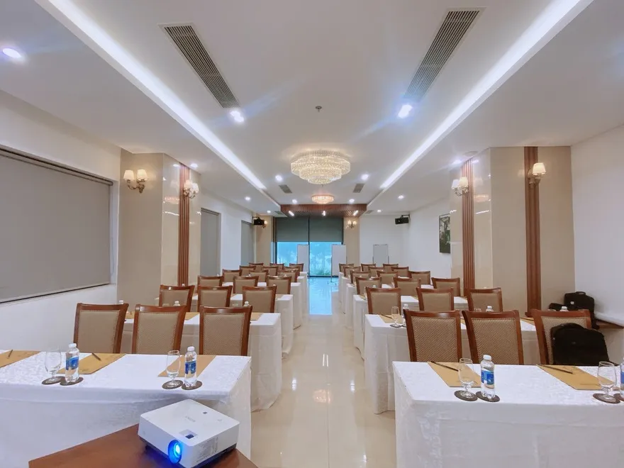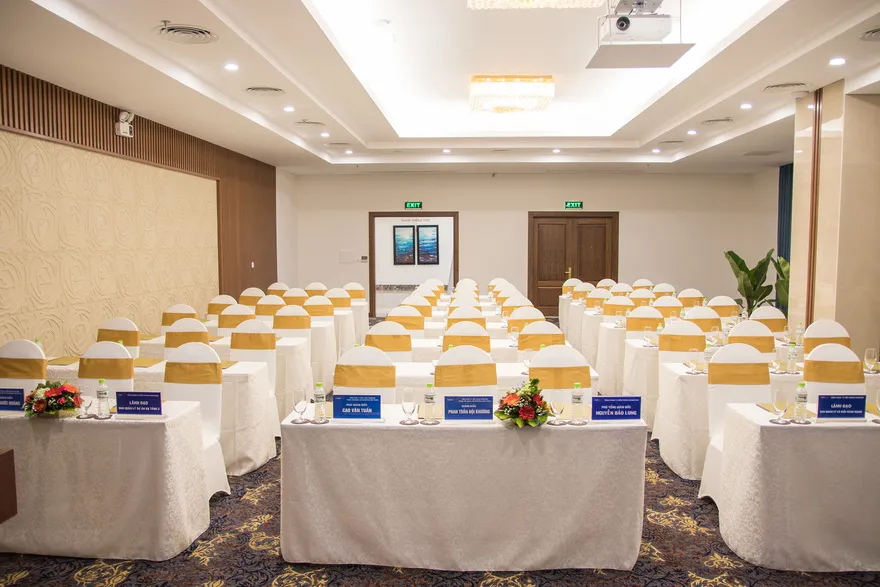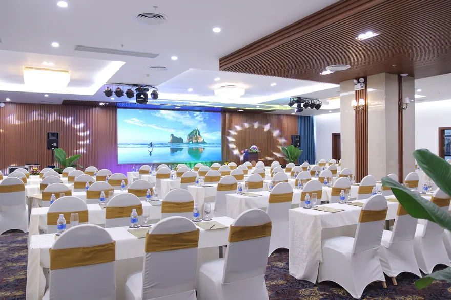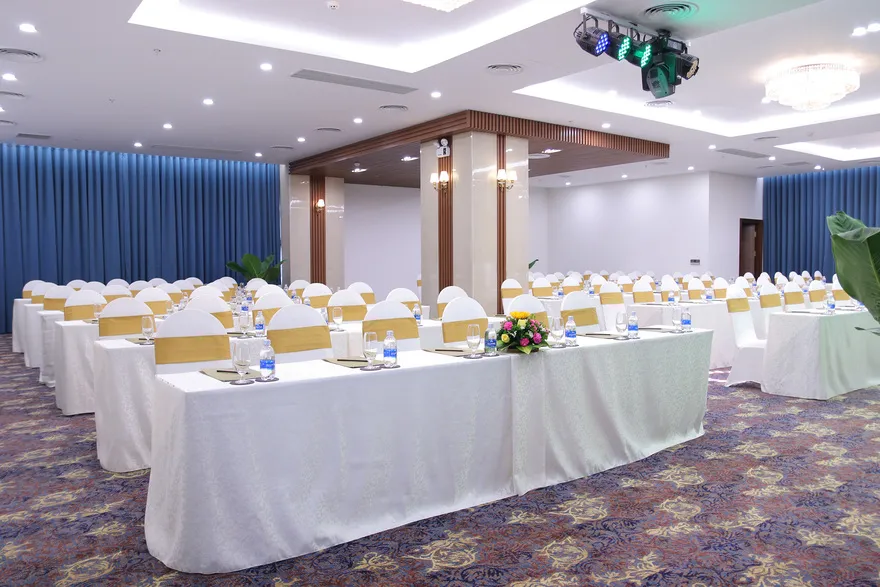 Không chỉ là nơi nghỉ dưỡng, Balcona Hotel Da Nang còn là bệ phóng cho những thành công rực rỡ với Trung tâm Hội nghị & Sự kiện (MICE) chuyên nghiệp. Với 6 loại phòng họp linh hoạt có diện tích từ 35 $m^2$ đến 469 m^2, chúng mình thấu hiểu rằng mỗi sự kiện đều cần một “sân khấu” xứng tầm để tỏa sáng. Những khán phòng như “The View” hay “Seaside” với sức chứa lên đến 250 khách không chỉ đáp ứng yêu cầu về không gian mà còn mang lại cảm hứng sáng tạo nhờ tầm nhìn hướng biển. Và cho những quyết định quan trọng cần sự kín đáo, hệ thống phòng ăn VIP riêng tư luôn sẵn sàng phục vụ, biến mỗi bữa tiệc trở thành một cầu nối bền chặt cho những mối quan hệ đối tác bền vững.