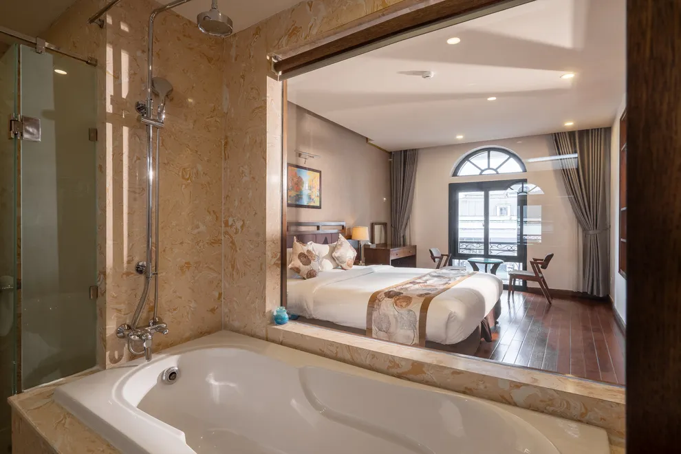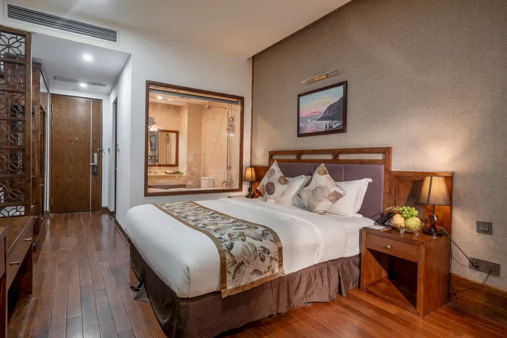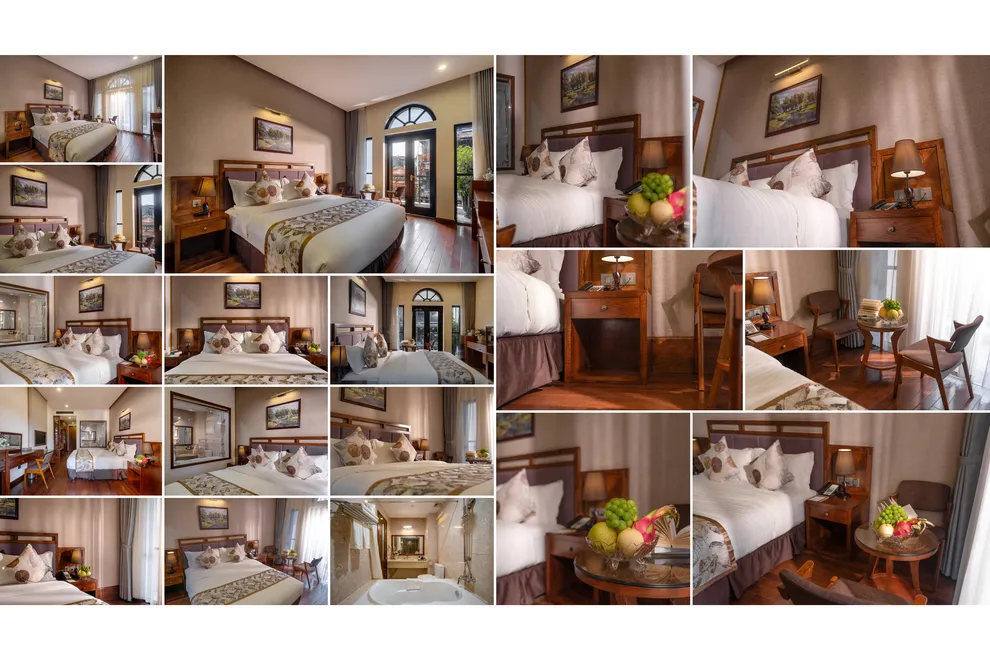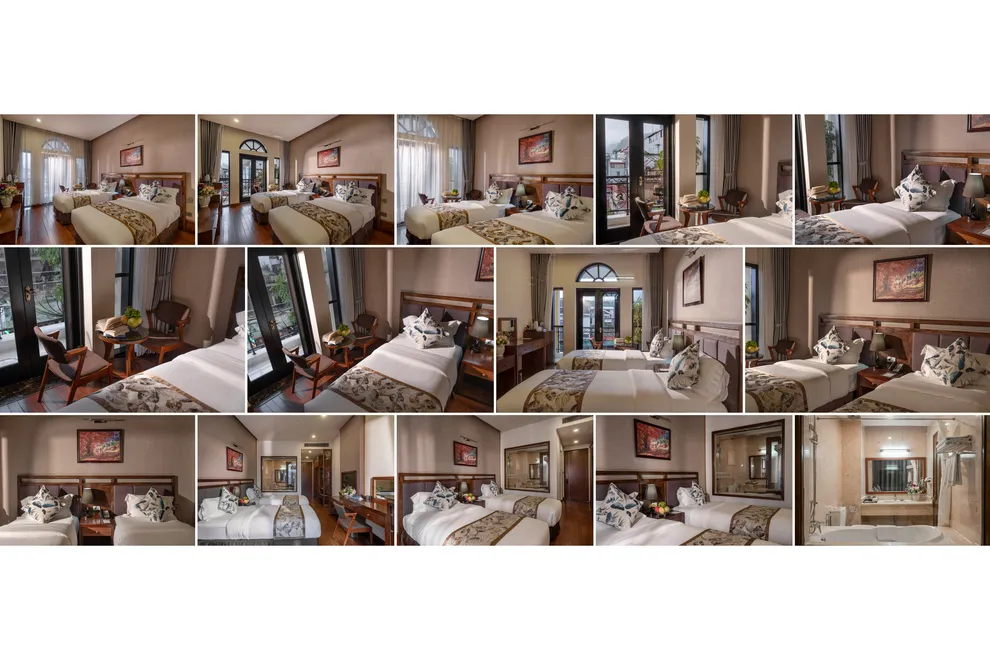 Hệ thống lưu trú của khách sạn gồm 60 đến 70 phòng nghỉ, phân hóa đa dạng từ hạng Superior với thiết kế ban công nội bộ yên tĩnh đến hạng Grand Suite rộng 65 m^2 sở hữu tầm nhìn panorama bao trọn thị trấn. Điểm nhấn vượt trội sau cải tạo chính là tiêu chuẩn “Giấc ngủ vàng” với 100% phòng được trang bị đệm memory foam, ga giường từ cotton Ai Cập mềm mại và hệ thống điều hòa sưởi hai chiều ổn định, giúp du khách luôn cảm thấy ấm áp trong mùa đông Sa Pa khắc nghiệt. Các tiện nghi như sàn gỗ, cách âm tốt và trang thiết bị vệ sinh hiện đại cũng được chú trọng nâng cấp để đảm bảo sự hài lòng tuyệt đối.