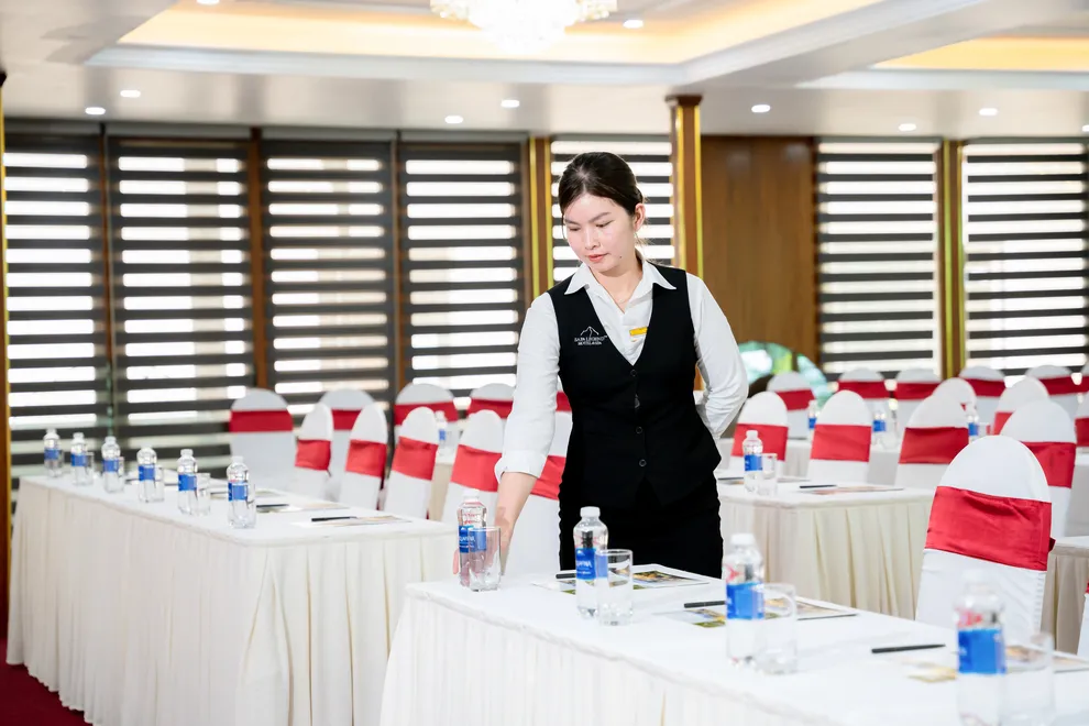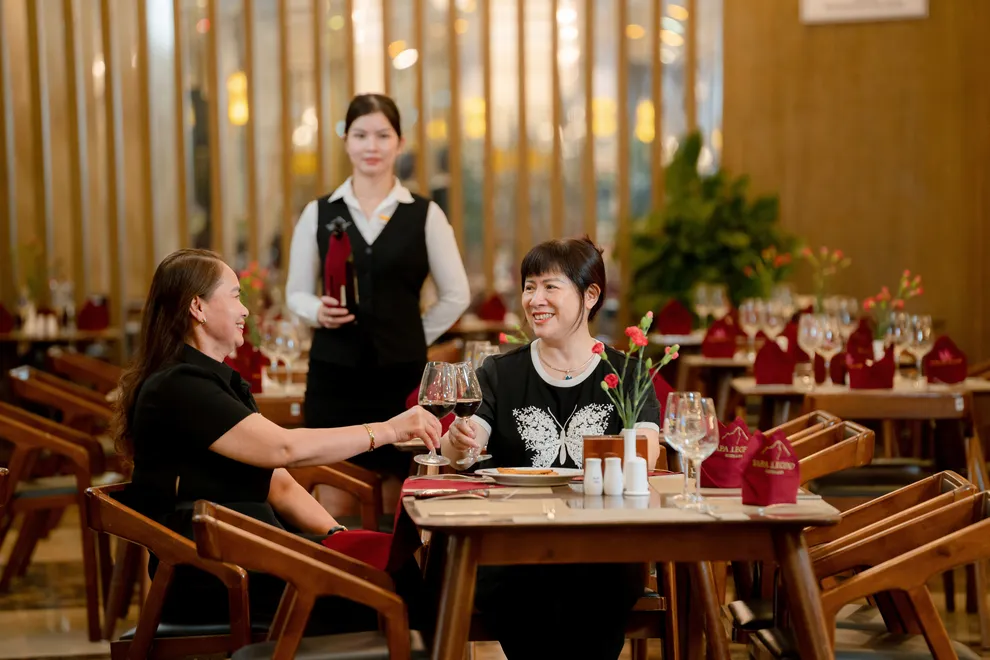 Bên cạnh không gian nghỉ ngơi, hệ thống dịch vụ tại đây cũng vô cùng đặc sắc với nhà hàng Cát Cát phục vụ buffet sáng từ 6:00 AM, chuyên về các món ẩm thực quốc tế lẫn đặc sản bản địa như cá tầm và lợn bản. Legend Spa mang đến trải nghiệm tắm lá thuốc người Dao Đỏ truyền thống, giúp phục hồi sức khỏe nhanh chóng sau những chuyến trekking dài ngày. Ngoài ra, khách sạn còn cung cấp đầy đủ phòng Gym, khu vực xông hơi Sauna, dịch vụ thuê xe đạp và bãi đậu xe miễn phí—một lợi thế hiếm có tại trung tâm thị trấn.