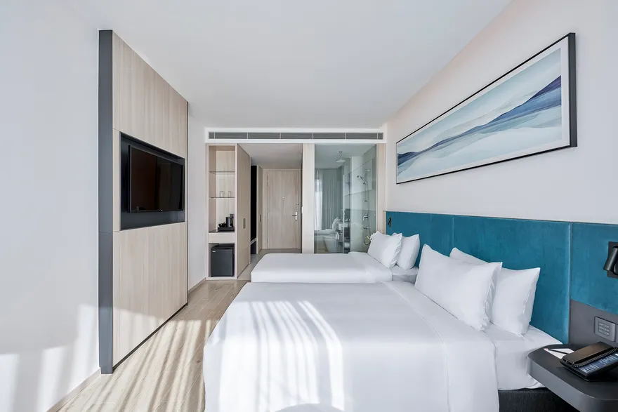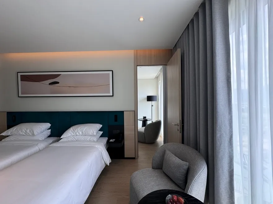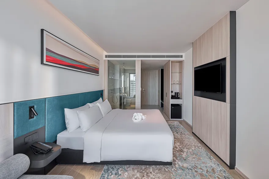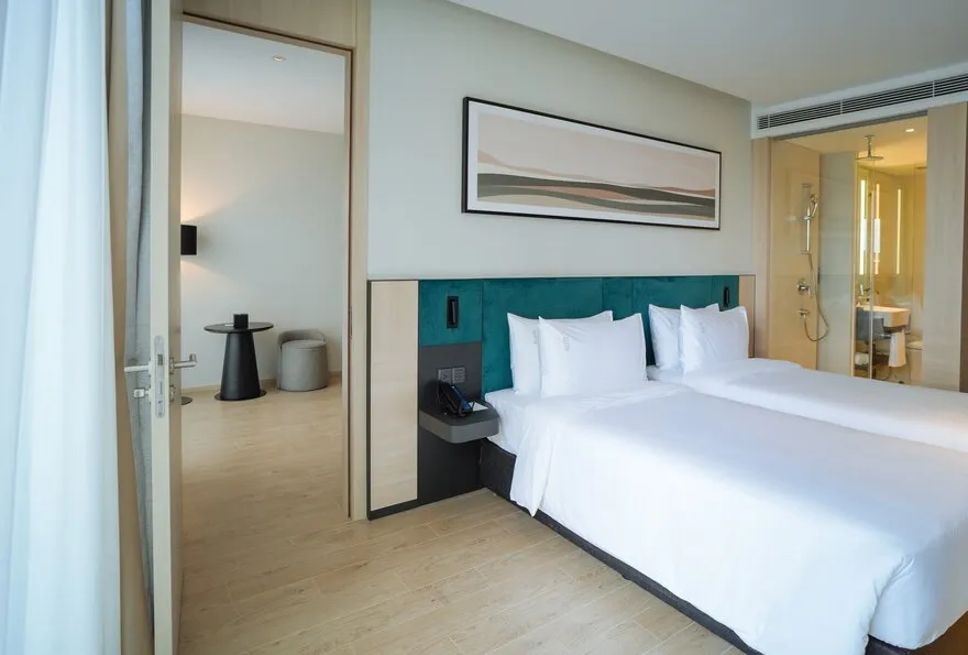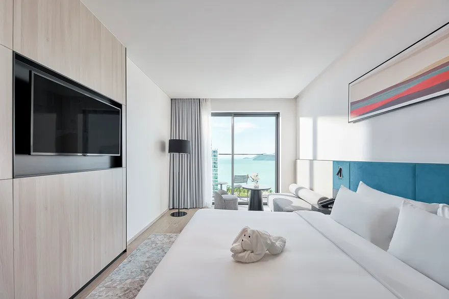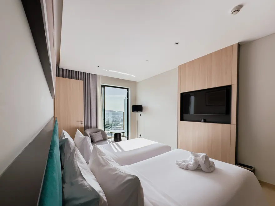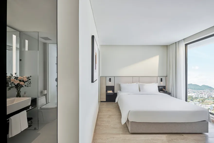 Sở hữu quy mô 245 phòng nghỉ được thiết kế tinh tế nhằm tối ưu hóa sự thư giãn và thoải mái cho du khách , với điểm nhấn đặc trưng là hầu hết các hạng phòng đều sở hữu ban công riêng biệt để tận hưởng trọn vẹn ánh sáng và không gian. Các hạng phòng chủ lực như City View với tùy chọn cửa sổ hoặc ban công là lựa chọn tối ưu cho khách công vụ và các cặp đôi cần sự tiện nghi đô thị. Đối với du khách yêu thích thưởng ngoạn cảnh sắc, các dòng phòng Mountain và Sea View Balcony cung cấp tầm nhìn panorama hướng thẳng ra vịnh Nha Trang hoặc những dãy núi phía Tây hùng vĩ. Bên cạnh đó, khách sạn còn mang đến không gian Family Suite rộng 55 $m^2$ lý tưởng cho các gia đình từ 4 đến 5 thành viên , cùng hệ thống 12 phòng Luxury Suite cao cấp sở hữu nội thất tinh xảo, khẳng định vị thế của một cơ sở lưu trú hạng sang thế hệ mới.