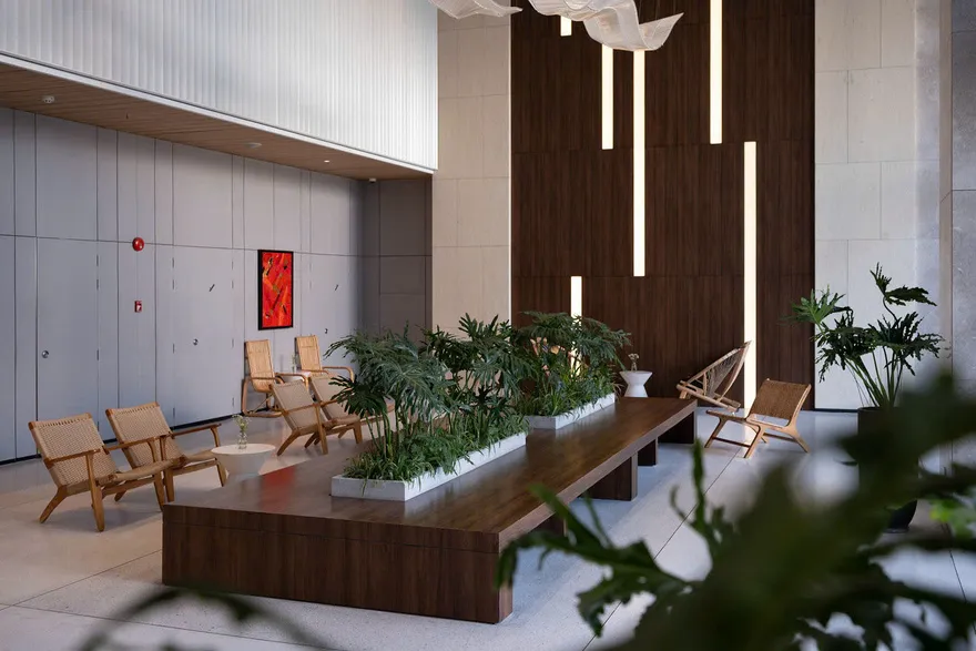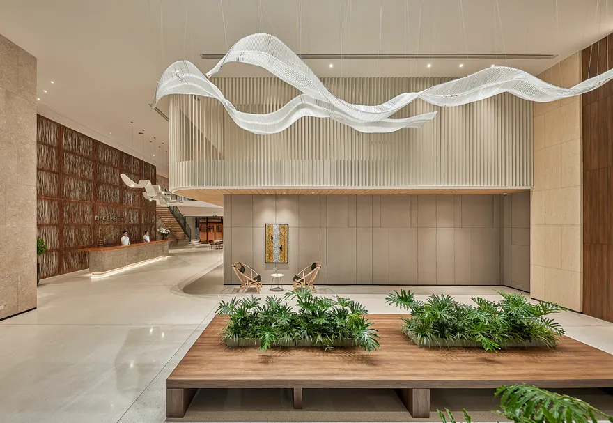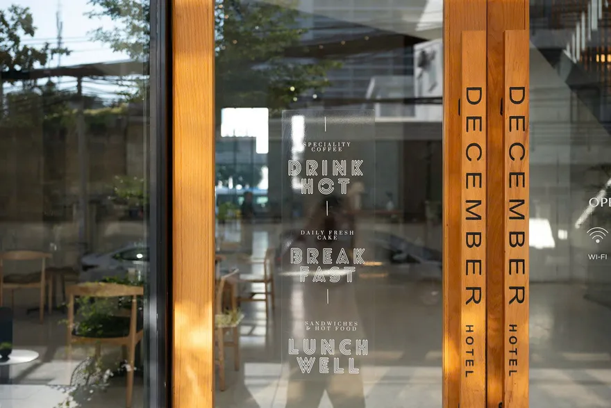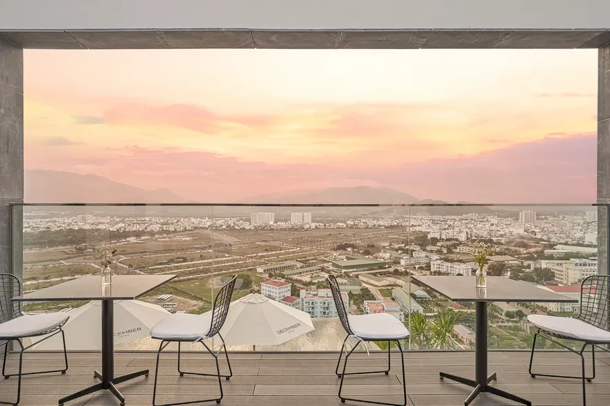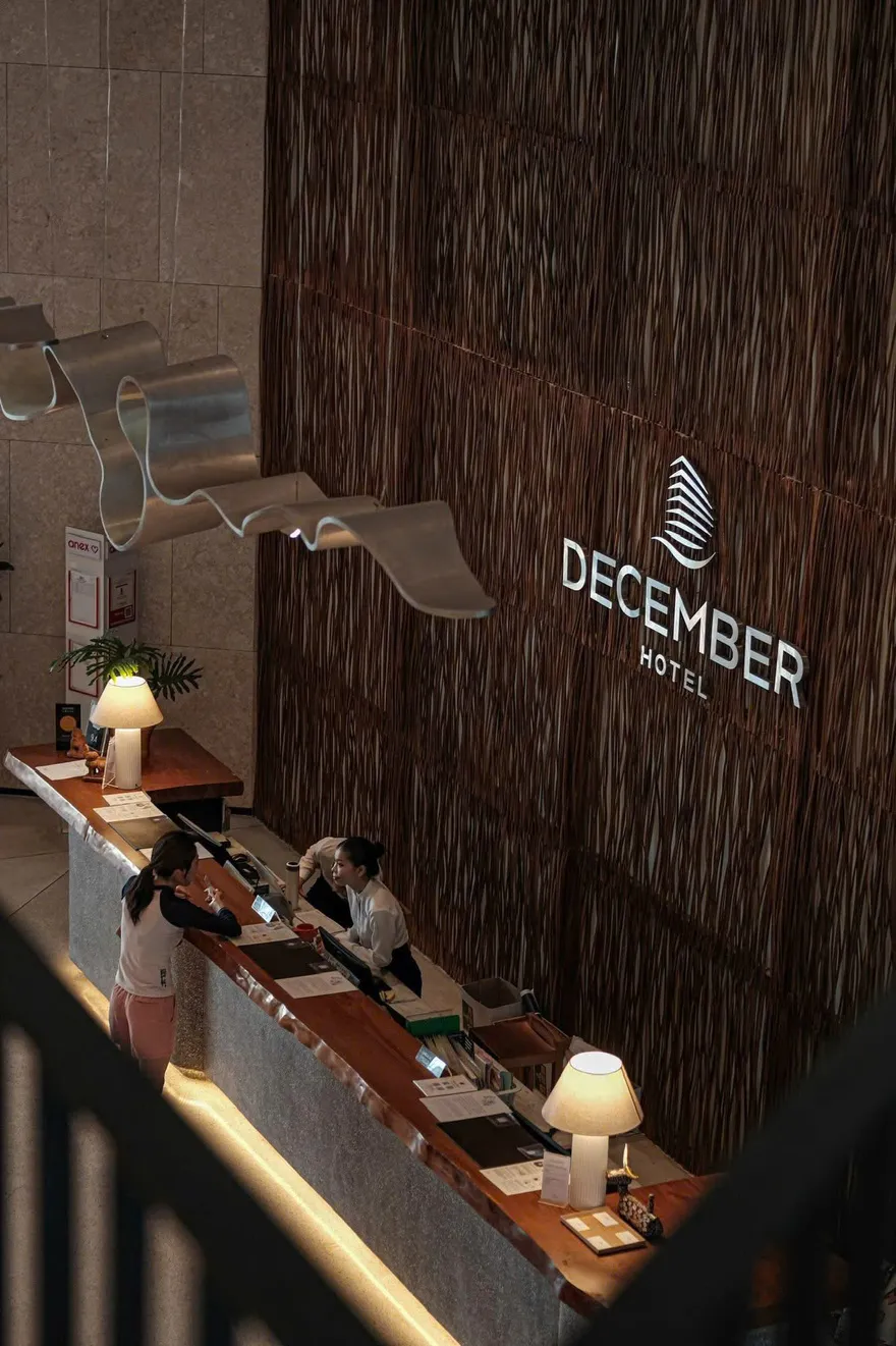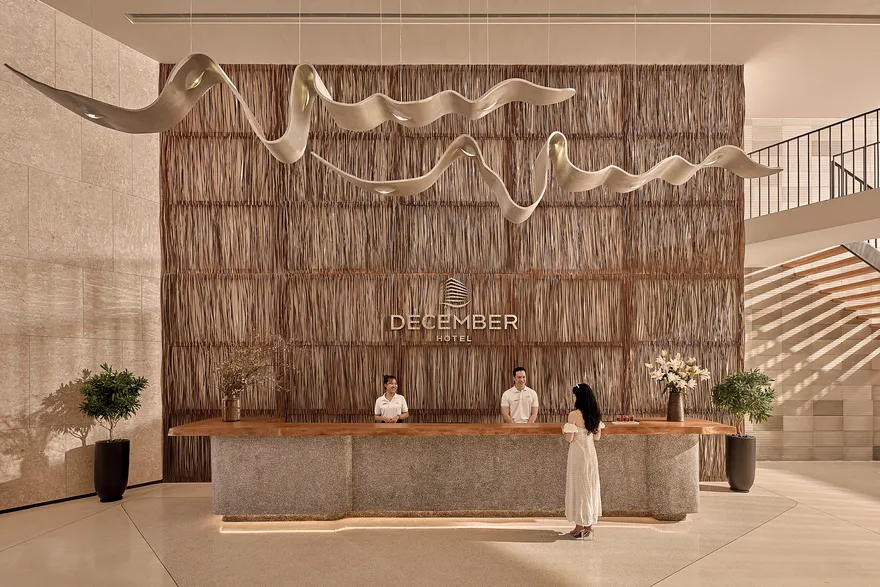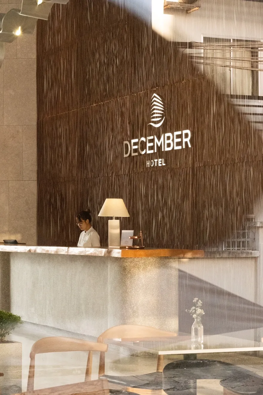 Kiến trúc của December Hotel Nha Trang mang ngôn ngữ thiết kế tinh tế với sự giao thoa hài hòa giữa các tông màu cát và xanh dương. Triết lý chủ đạo xuyên suốt công trình là việc ưu tiên tận dụng tối đa nguồn ánh sáng tự nhiên và mở rộng không gian, mang lại cho du khách một cảm nhận thực thụ về sự thoáng đãng và thư thái. Điểm nhấn kiến trúc đặc biệt nhất nằm ở khu vực sảnh chờ sang trọng, nơi được bố trí biểu tượng lò sưởi ấm cúng nhằm kiến tạo một không gian đón tiếp vừa tinh tế, vừa gần gũi, giúp xóa bỏ cảm giác công nghiệp và mang lại bầu không khí như đang ở nhà ngay từ những phút đầu tiên.