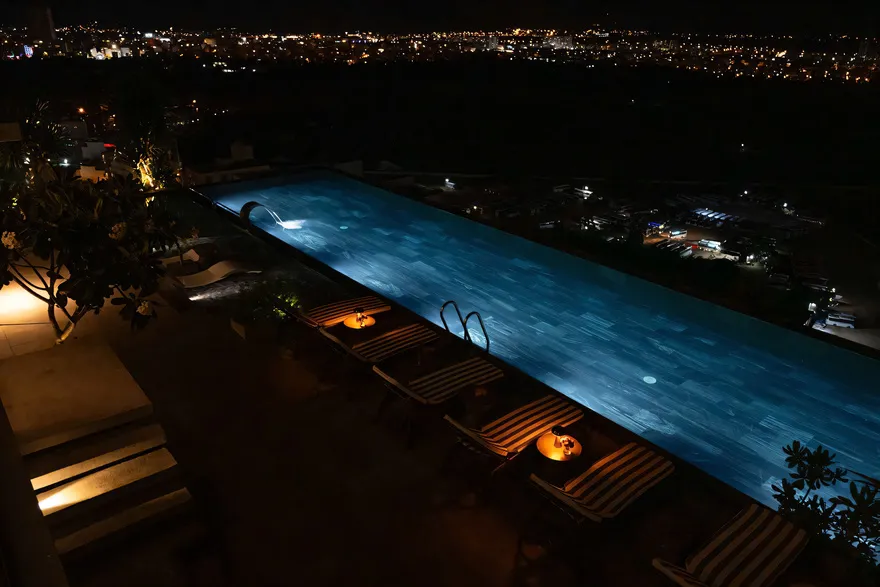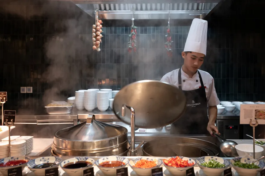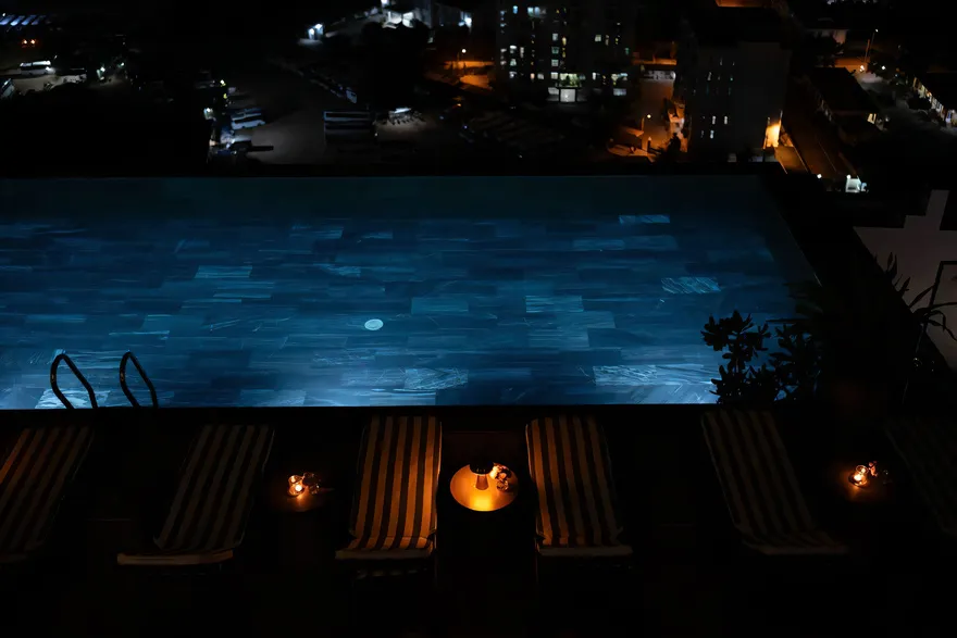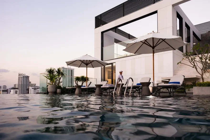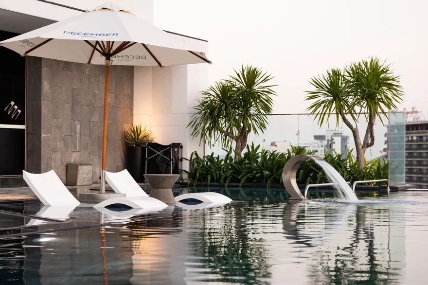 Hệ sinh thái dịch vụ tại December Hotel được thiết kế để mang đến những giá trị trải nghiệm vượt trội cho du khách trong suốt kỳ lưu trú. Điểm nhấn nổi bật nhất chính là hồ bơi vô cực (Rooftop Infinity Pool) tọa lạc tại tầng 26, nơi mang đến tầm nhìn toàn cảnh ra núi non và là địa điểm ngắm hoàng hôn tuyệt đẹp với thiết kế trang nhã, thanh bình. Về ẩm thực, nhà hàng 12 Kitchen tại tầng 4 chuyên phục vụ buffet sáng phong phú cùng các bữa trưa mang đậm hương vị truyền thống Việt Nam trong một không gian kiến trúc ấm cúng. Trong khi đó, Maichoise Café tại khu vực sảnh lại là không gian tinh tế để thưởng thức cà phê gourmet cùng các loại bánh ngọt và đồ ăn nhẹ được chế biến từ những nguyên liệu hảo hạng. Song song với đó, hệ thống tiện ích chăm sóc sức khỏe và giải trí cũng được chú trọng đầu tư với Salt Spa cung cấp các chương trình trị liệu chuyên biệt , phòng tập Re:Charge Gym sở hữu hệ thống máy móc hiện đại phục vụ nhu cầu rèn luyện thể chất , và Kid’s Club là khu vực vui chơi an toàn, kích thích sự khám phá cho các bé với nhiều hoạt động bổ ích như tô màu hay đọc sách.