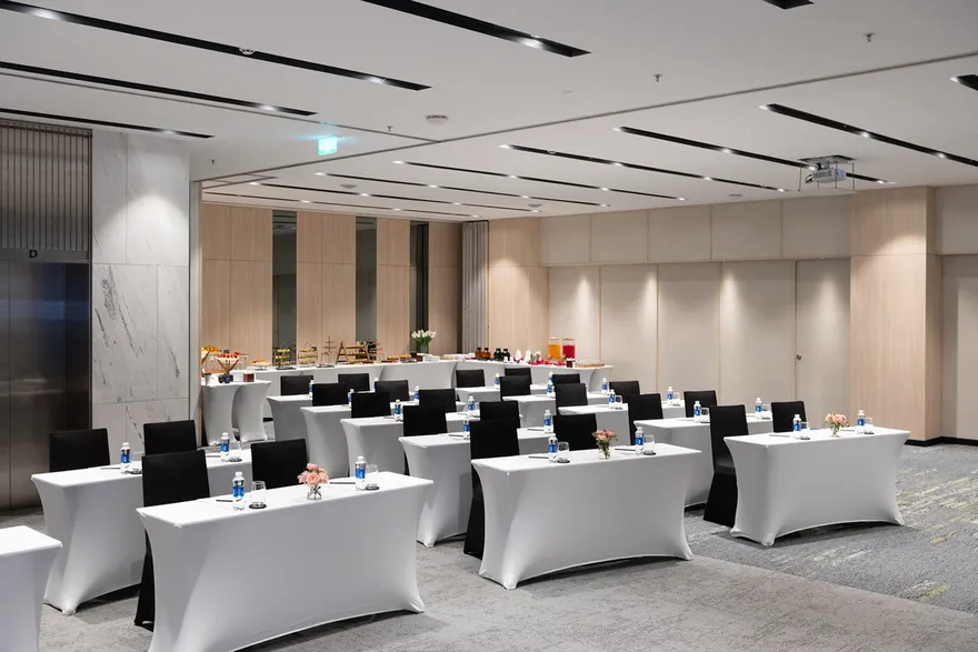 Hệ thống phòng sự kiện sở hữu các thiết bị âm thanh, ánh sáng tối tân cùng máy chiếu LCD và màn hình chất lượng cao.