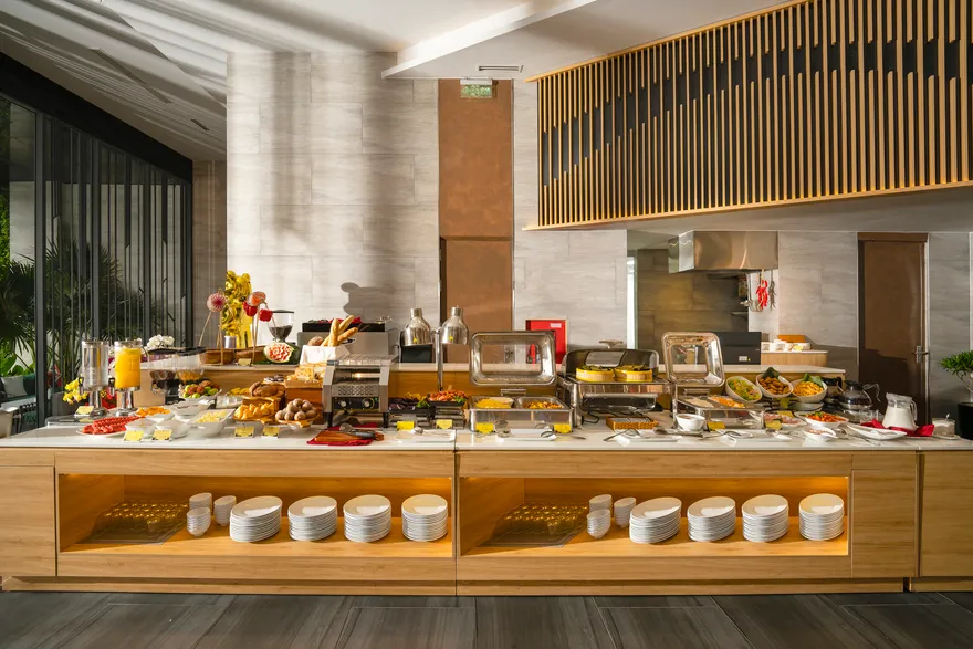 • Hệ thống nhà hàng tại chỗ: Phục vụ buffet sáng hằng ngày với thực đơn thay đổi liên tục.