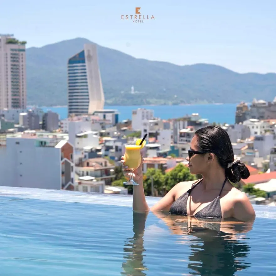 Hệ sinh thái tiện ích “Wellness & Giải trí” tại Estrella Boutique là điểm nhấn giúp tái tạo năng lượng hoàn hảo cho du khách. Hồ bơi sân thượng với tầm nhìn Panorama toàn cảnh bán đảo Sơn Trà và biển Mỹ Khê mang đến không gian thư giãn vô cực giữa lòng đô thị. Bên cạnh đó, trung tâm chăm sóc sức khỏe với các liệu trình Spa chuyên nghiệp, phòng xông hơi Sauna & Steam cùng phòng tập Gym hiện đại cho phép khách hàng duy trì thói quen rèn luyện thể chất ngay cả khi đang đi du lịch. Nhằm khuyến khích lối sống bền vững, khách sạn còn cung cấp các tiện ích miễn phí như xe đạp khám phá phố phường, nước uống chào mừng và trà, cafe hằng ngày tại phòng nghỉ.
