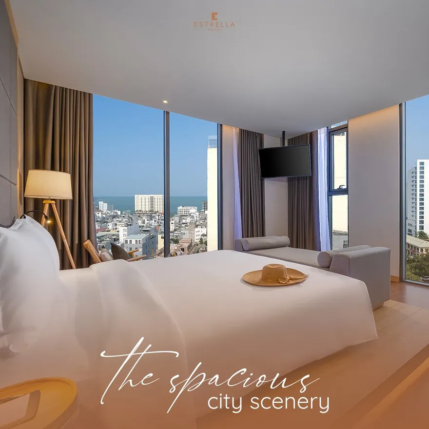 Hệ thống lưu trú tại đây được phân cấp khoa học từ các hạng phòng Superior tiết kiệm, Deluxe City View đến Senior Suite sang trọng và đặc biệt là hạng phòng Estrella Suite sở hữu bể sục Jacuzzi riêng biệt. Mỗi đơn vị lưu trú đều được thiết kế tỉ mỉ để tối ưu hóa ánh sáng tự nhiên và tầm nhìn hướng phố thoáng đãng. Khách sạn cũng áp dụng các chính sách nhân văn và linh hoạt cho gia đình như miễn phí hoàn toàn cho trẻ em dưới 6 tuổi khi ở chung với cha mẹ, cùng các tùy chọn giường phụ hoặc phụ thu hợp lý cho trẻ lớn hơn, đảm bảo sự tiện nghi và thoải mái nhất cho mọi chuyến hành trình.