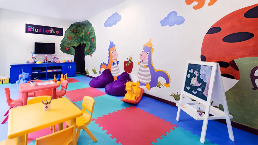 Kids Lounge tại tầng B1 không chỉ là khu vui chơi rực rỡ sắc màu mà còn có đội ngũ nhân viên trông giữ trẻ chuyên nghiệp hỗ trợ. Khu vực này mở cửa hàng ngày từ 08:00 và kéo dài đến 21:00 vào các ngày thứ Sáu hoặc ngày lễ để các bậc phụ huynh yên tâm tận hưởng bữa tối hoặc dịch vụ spa.