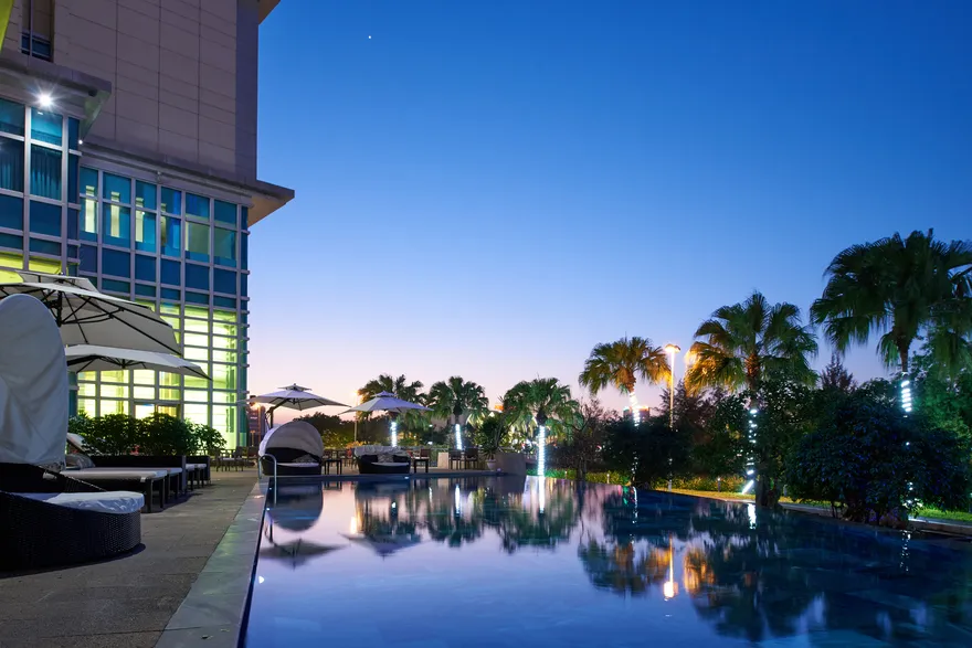 Grand Mercure Đà Nẵng là biểu tượng tiêu biểu trong hệ thống AccorHotels, đóng vai trò quan trọng trong chiến lược tái định nghĩa khái niệm “sang trọng bản địa” tại miền Trung Việt Nam. Triết lý của thương hiệu tập trung vào sự giao thoa hoàn hảo giữa tiêu chuẩn dịch vụ phương Tây cao cấp và bản sắc văn hóa đặc trưng của địa phương. Tòa nhà kiến trúc 22 tầng tọa lạc tại Khu biệt thự Đảo Xanh mang đến một không gian nghỉ dưỡng tĩnh lặng như một “ốc đảo” bình yên, tách biệt giữa dòng sông Hàn nhưng vẫn giữ được nhịp kết nối linh hoạt với trung tâm thành phố sôi động.