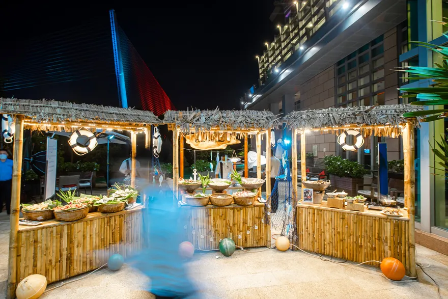 Cuối cùng, Grand Mercure Đà Nẵng khẳng định đẳng cấp trong lĩnh vực tổ chức sự kiện và tiệc cưới chuyên nghiệp. Hạ tầng MICE bao gồm Son Tra Grand Ballroom rộng 433 $m^2$ có khả năng chia nhỏ linh hoạt bằng vách ngăn cách âm, tích hợp màn hình LED và hệ thống âm thanh ánh sáng tối tân. Đối với những ngày trọng đại, không gian ven sông lãng mạn cùng dịch vụ tiệc cưới “Now & Forever” luôn sẵn sàng chào đón các sự kiện quy mô từ 150 đến 600 khách, ghi dấu những khoảnh khắc tuyệt vời nhất tại Đảo Xanh