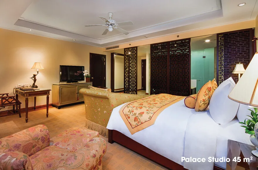Với hệ thống 222 chìa khóa phòng, khách sạn phân bổ các loại phòng dựa trên vị trí tầng để tạo ra sự phân cấp về mức độ riêng tư và đặc quyền. Các tầng Palace tiêu chuẩn cung cấp các hạng phòng Deluxe, Studio và Suite tinh tế, trong khi các tầng Indochine Club từ tầng 10 đến tầng 16 dành riêng cho những khách hàng đòi hỏi đẳng cấp cao hơn với các thiết bị công nghệ hiện đại và đồ dùng cá nhân xa hoa. Đỉnh cao của sự sang trọng là căn Grand Suite nằm tại tầng 14 với diện tích lên tới 202 $m^2$, mang đến một không gian nghỉ dưỡng thực thụ cho những vị khách đặc biệt.