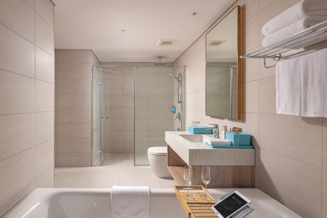 Hầu hết các phòng đều sở hữu tầm nhìn toàn cảnh ra Vịnh và được trang bị bồn tắm thư giãn.