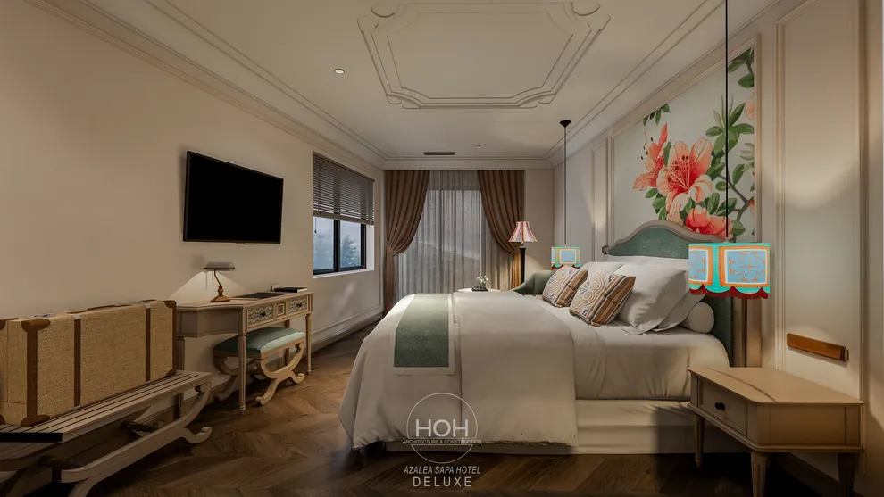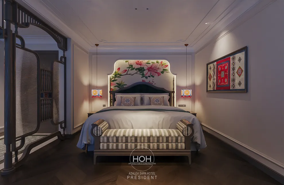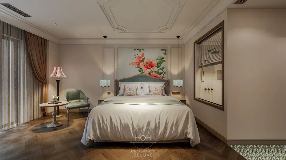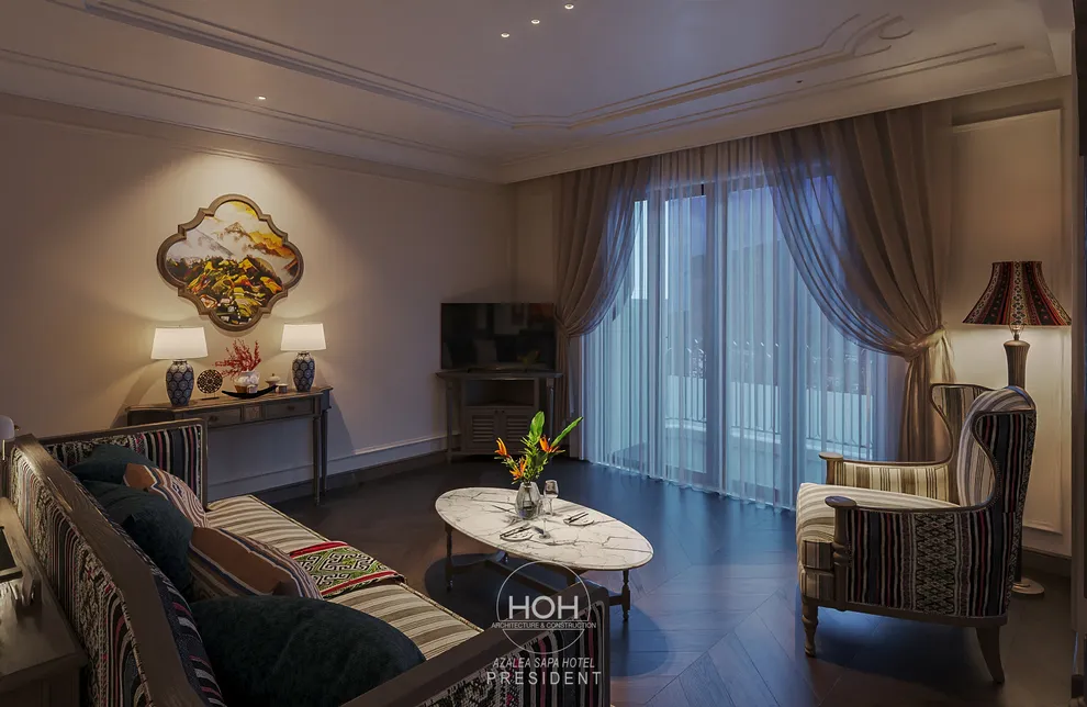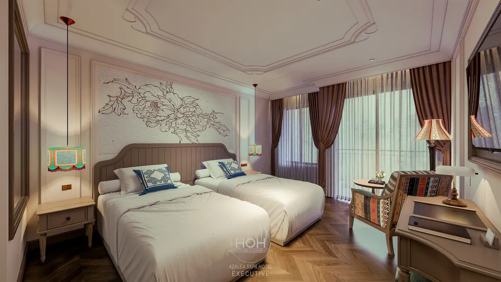 Khám phá Azalea Sapa Hotel, du khách sẽ ngay lập tức bị ấn tượng bởi sự giao thoa tinh tế giữa kiến trúc Tân cổ điển châu Âu và linh hồn văn hóa đặc trưng của vùng cao Tây Bắc. Được ví như một “tòa lâu đài nguy nga ẩn hiện trong sương mù”, khách sạn sở hữu diện mạo sang trọng nhưng không kém phần ấm cúng nhờ không gian nội thất đậm chất nghệ thuật với những họa tiết thổ cẩm thủ công của người Hmong và Dao. Với quy mô boutique giới hạn chỉ 29 phòng nghỉ, nơi đây chú trọng vào sự riêng tư và dịch vụ cá nhân hóa, giúp mỗi kỳ nghỉ của bạn trở nên độc bản và trọn vẹn.