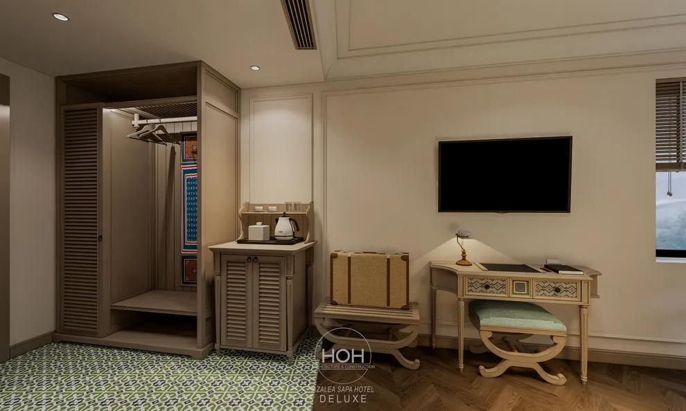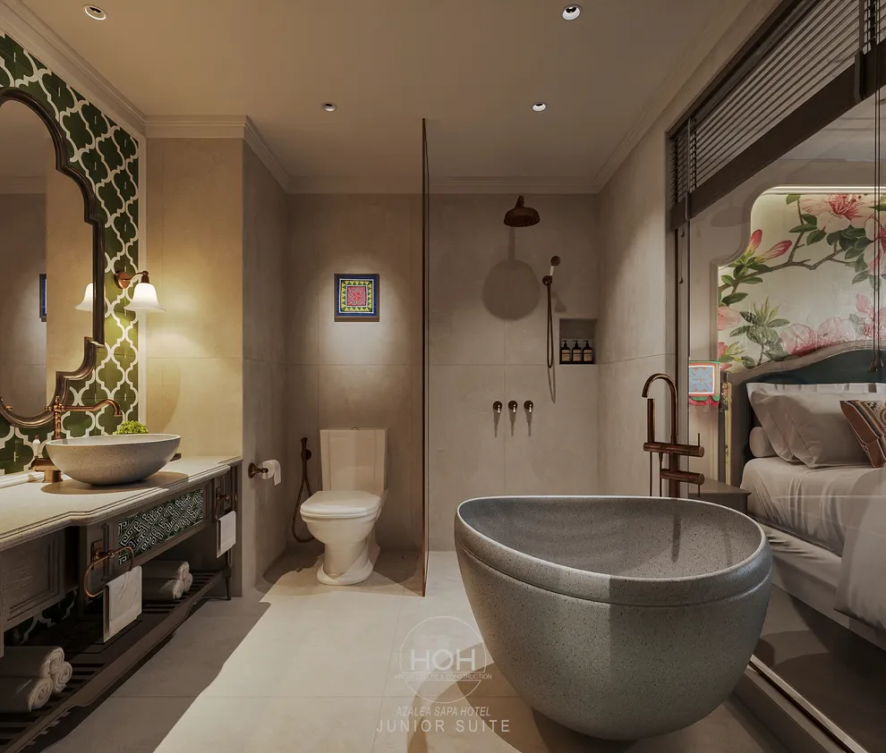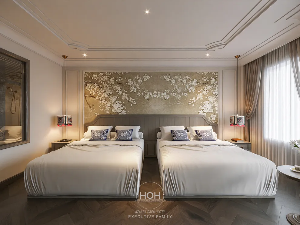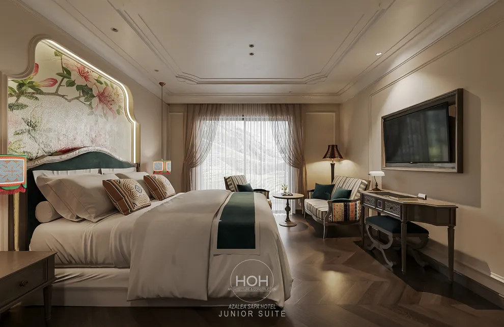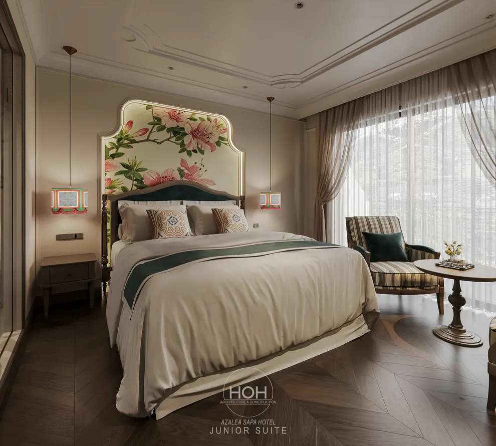 Khám phá Azalea Sapa Hotel, du khách sẽ ngay lập tức bị ấn tượng bởi sự giao thoa tinh tế giữa kiến trúc Tân cổ điển châu Âu và linh hồn văn hóa đặc trưng của vùng cao Tây Bắc. Được ví như một “tòa lâu đài nguy nga ẩn hiện trong sương mù”, khách sạn sở hữu diện mạo sang trọng nhưng không kém phần ấm cúng nhờ không gian nội thất đậm chất nghệ thuật với những họa tiết thổ cẩm thủ công của người Hmong và Dao. Với quy mô boutique giới hạn chỉ 29 phòng nghỉ, nơi đây chú trọng vào sự riêng tư và dịch vụ cá nhân hóa, giúp mỗi kỳ nghỉ của bạn trở nên độc bản và trọn vẹn.