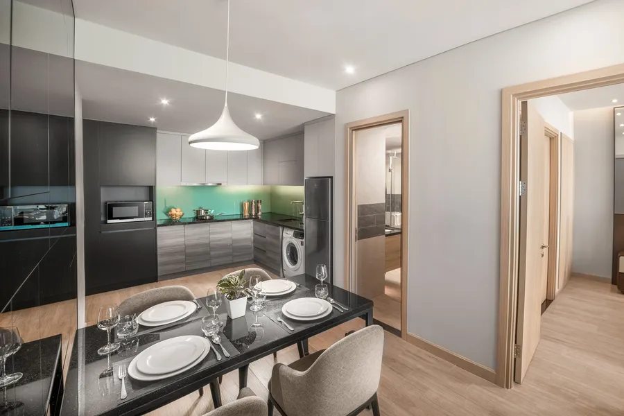 Dual Key (Chìa khóa đôi) là thiết kế đặc biệt ghép hai căn hộ độc lập lại với nhau thông qua một cửa chính chung. Điều này cho phép nhóm khách gia đình hoặc bạn bè ở cùng nhau nhưng vẫn đảm bảo sự riêng tư tuyệt đối. Tại Citadines Marina Halong, thiết kế này áp dụng cho hạng phòng 2 Bedroom Premier và 3 Bedroom Deluxe.